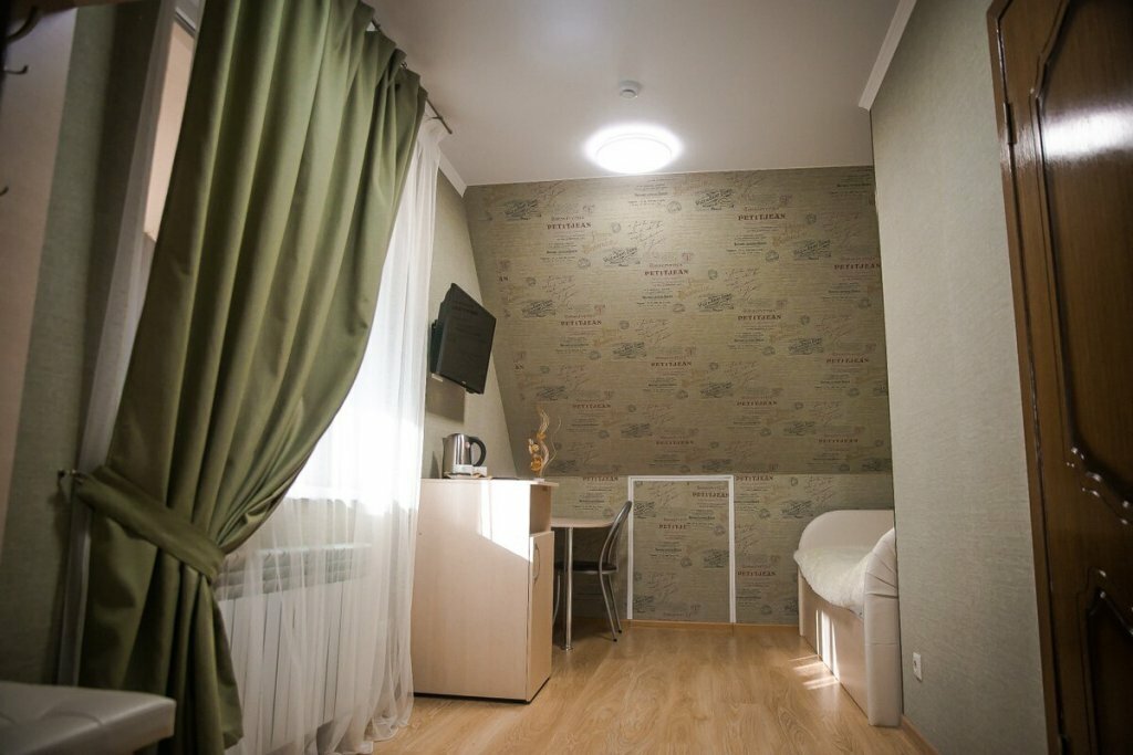 Чисто, уютно. В номере удобная кровать, телевизор, сплит, холодильник, чайник, 2 чашки. Приезжали в командировку с коллегами — остались довольны