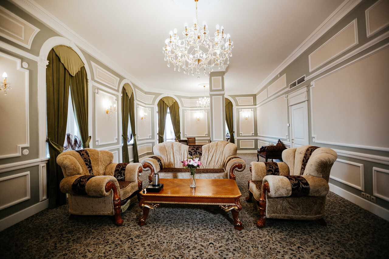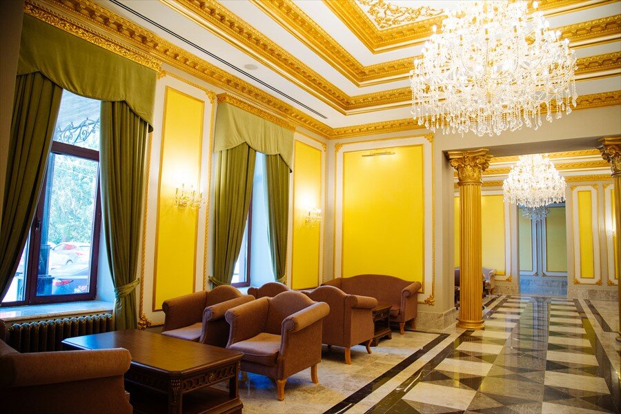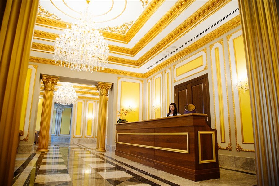 - Шикарные интерьеры (дворцовый стиль, хрусталь, позолота).