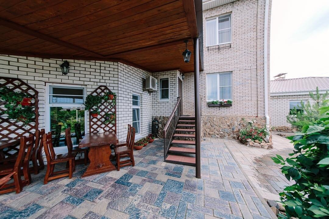 Услуги: — Номера (2000–4000 ₽/ночь) с кондиционером, Wi-Fi, телевизором, холодильником, чайником. — Санузел в номере, общая кухня, прачечная, микроволновка, плита. — Бесплатная парковка, платная сауна/баня, бильярд. — Разрешено проживание с детьми и животными (за доплату). — Завтрак (по выбору), терраса, сад, площадка для пикника.