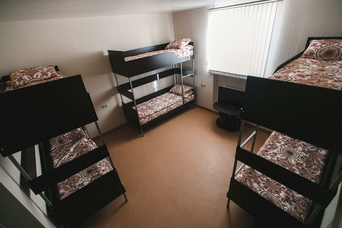 6-местные номера, каждый из которых оборудован санузлом и душем. В каждом номере: 3 двухъярусных кровати, 3 прикроватных тумбочки – каждая для 2 человек, журнальный столик, ЖК-телевизор, сплит-система, шкаф.
