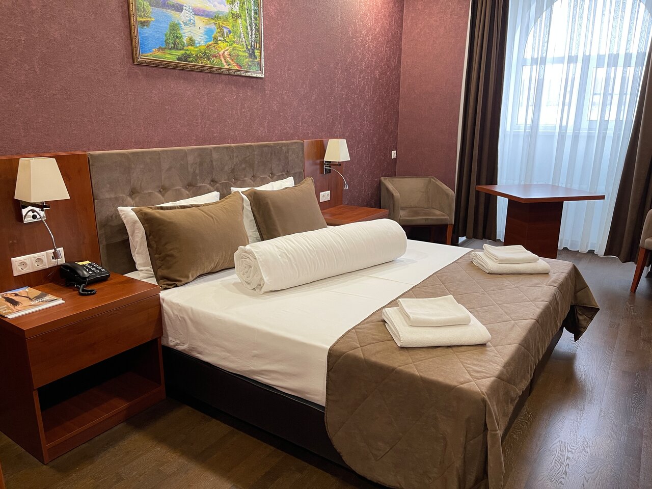 Отличная гостиница, номерной фонд хороший, (несмотря на время) есть только мелкие недочеты. Из неприятного только распускающиеся полотенца, потрепанные халаты и отсутствие воды по выходным (но это особенности города).