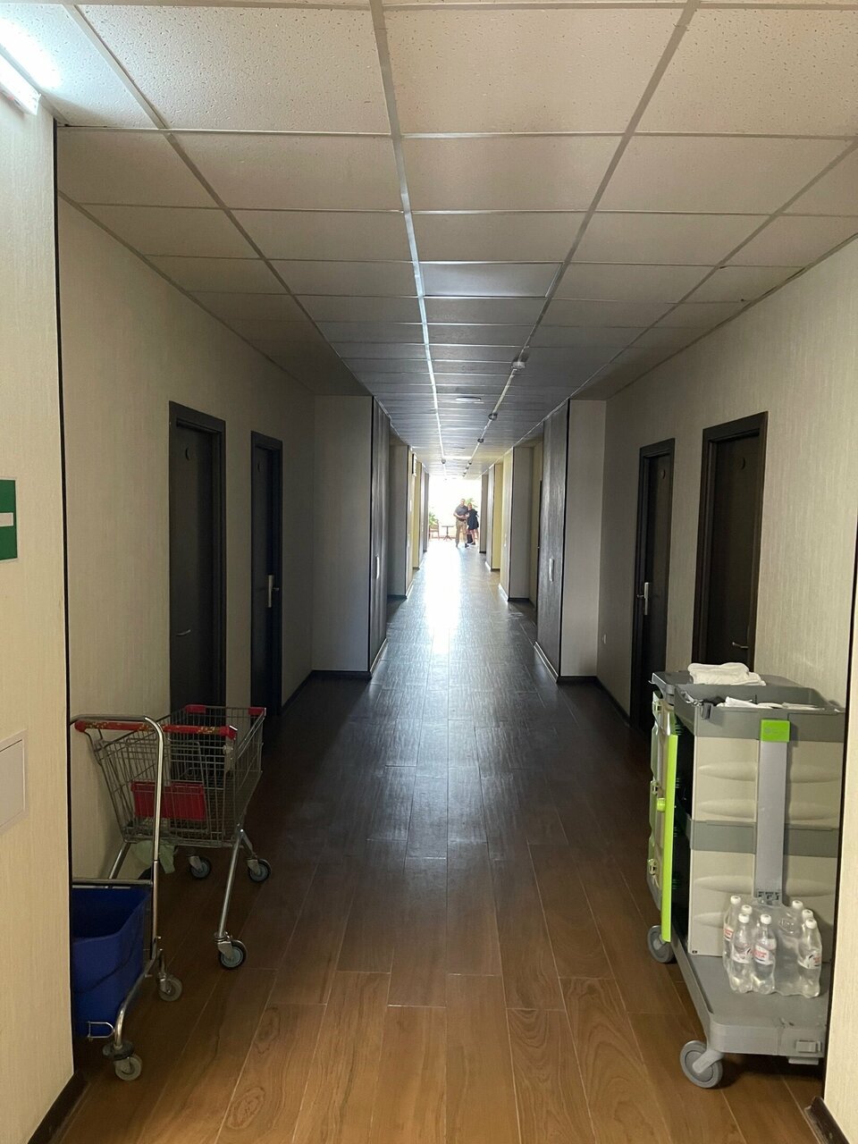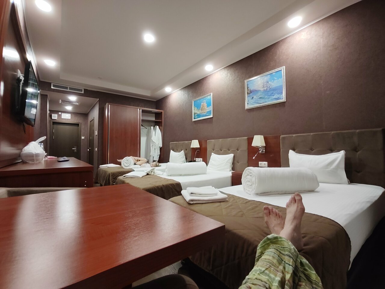Хороший уютный и чистый номер. Уборка каждый день. Большой минус данной гостиницы — завтраки. Попытались сделать мини шведский стол, но разнообразия и выбора просто нет — один вид каши, три дня подряд сосиски и запеканка, на сладкое блины. Большой минус это кухня.
