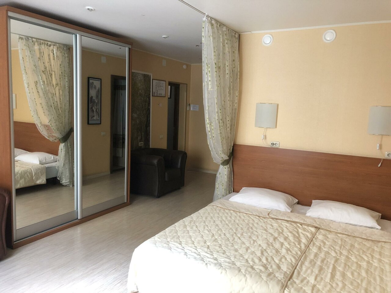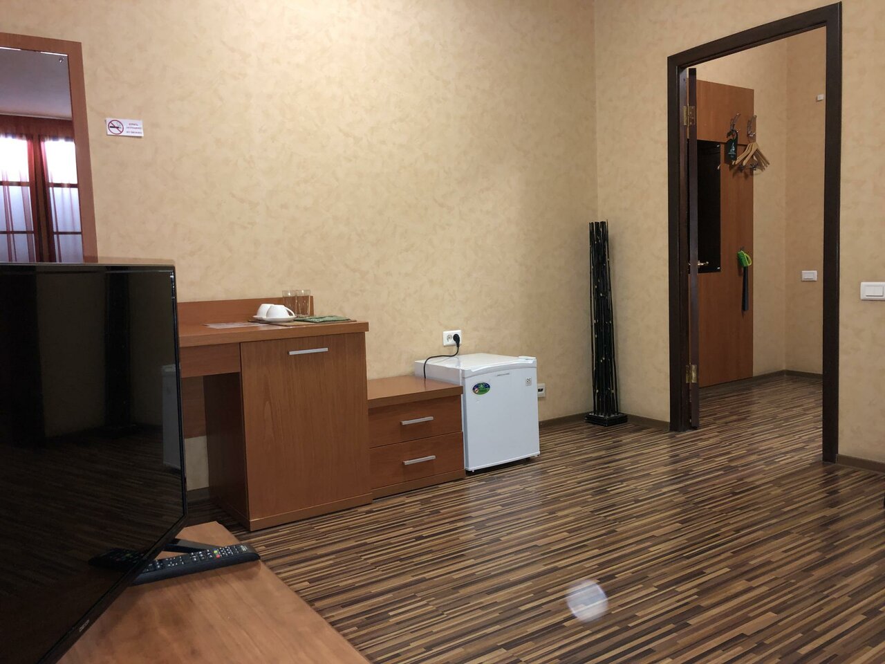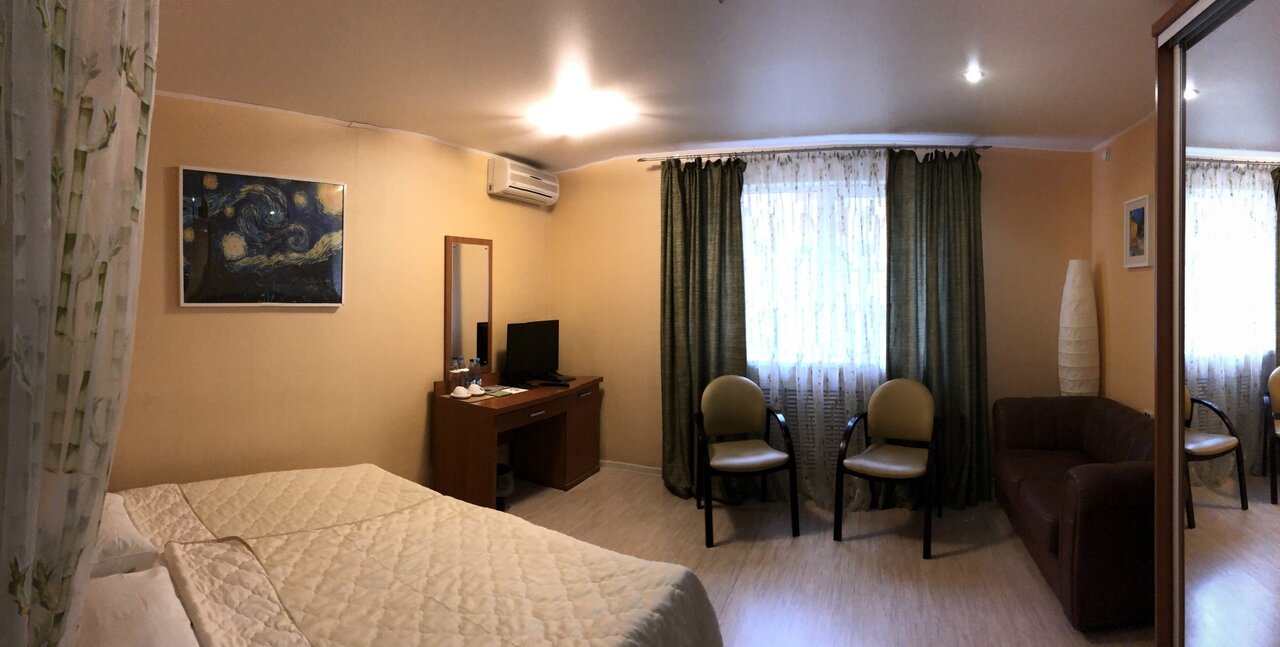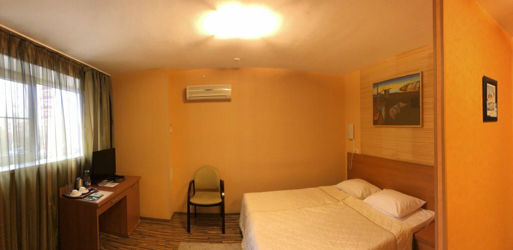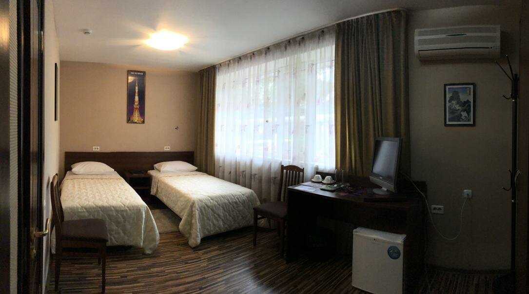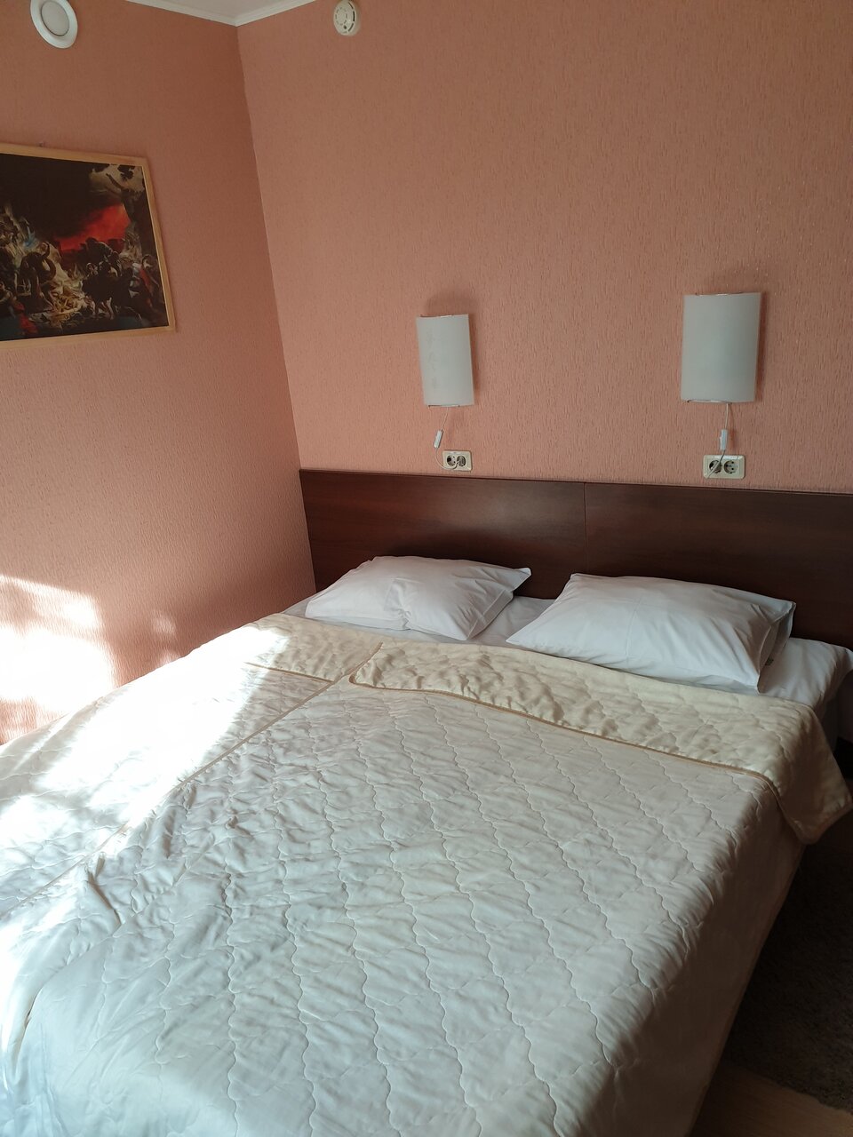 Заселились в отель в центре, надеясь на то, что будет безопасное место, совершенно не так… Находится в пугающем месте, ничего нет рядом, на улице дворовые лающие собаки, поэтому на улице довольно-таки опасно ходить. Рядом стриптиз клуб, и соответствующий ему контингент). Захотелось сходить позавтракать, рядом нет кафе, столовых, до них нужно ехать или идти минут 20-30. Дверца в номер не закрывается. Двухместная кровать это 2 одноместных. Пол грязный, результат заметен, если ходить по номеру босиком. Очень шумный бойлер и холодильник, от которого постоянно просыпаешься. Постельное бельё колючее и нет одеяла. Посуда пыльная, а вода платная (100 руб. ), обычно в номер ставят кувшин воды. Хорошо хотя бы, что воздух у них не платный. Номер стоит 2000, но там даже поспать тяжело, потому что ночью лают собаки за окном и там настолько прекрасная шумоизоляция).. слышно, как люди занимаются сексом, причём люди контингента, ходящие в стриптиз клуб