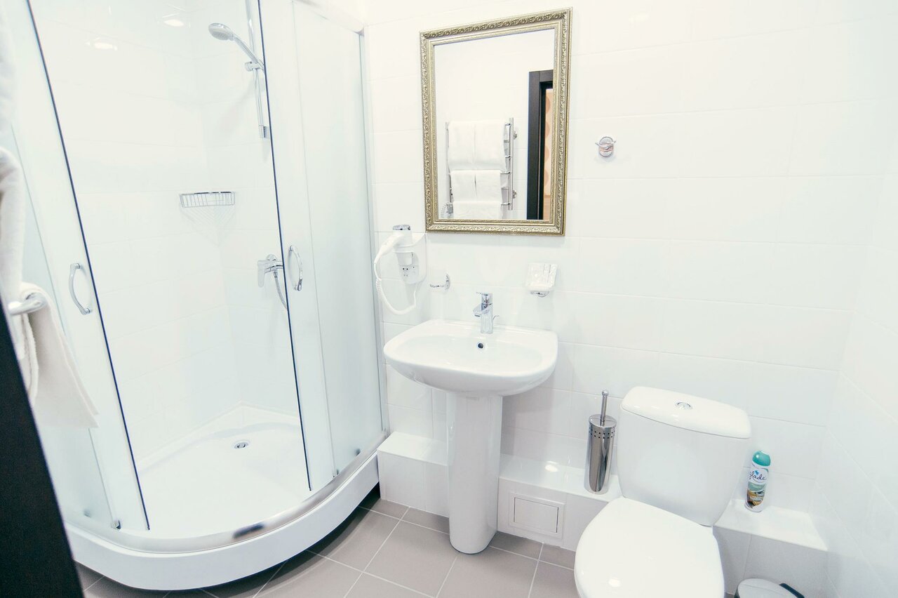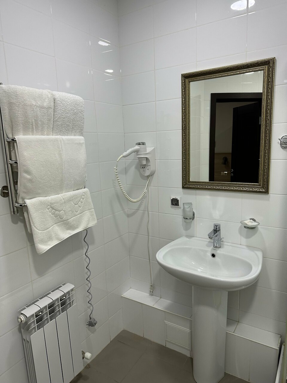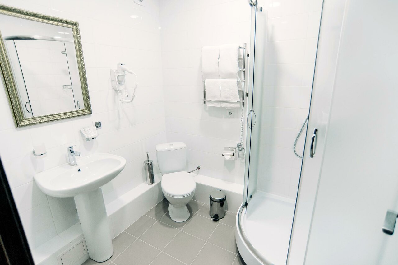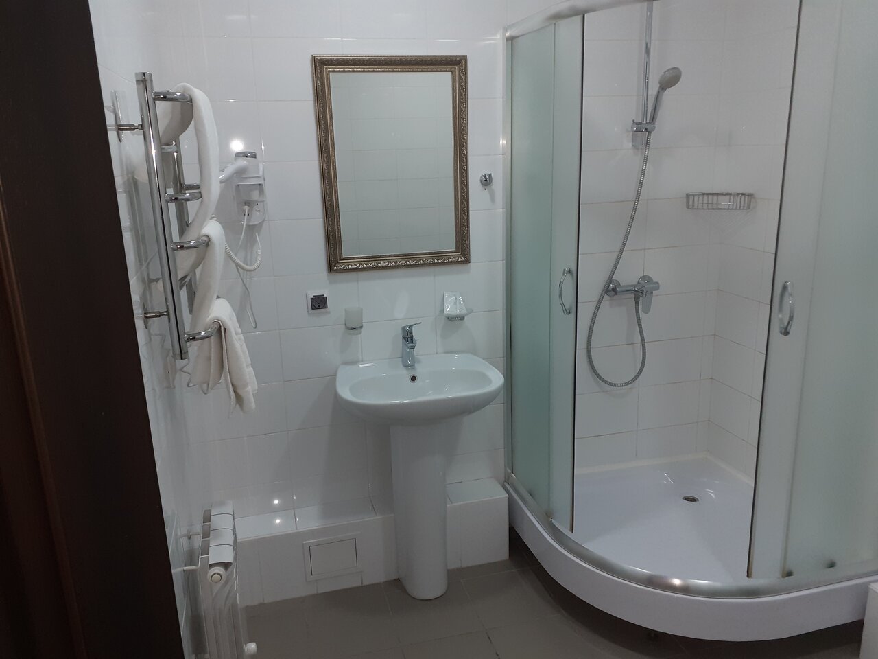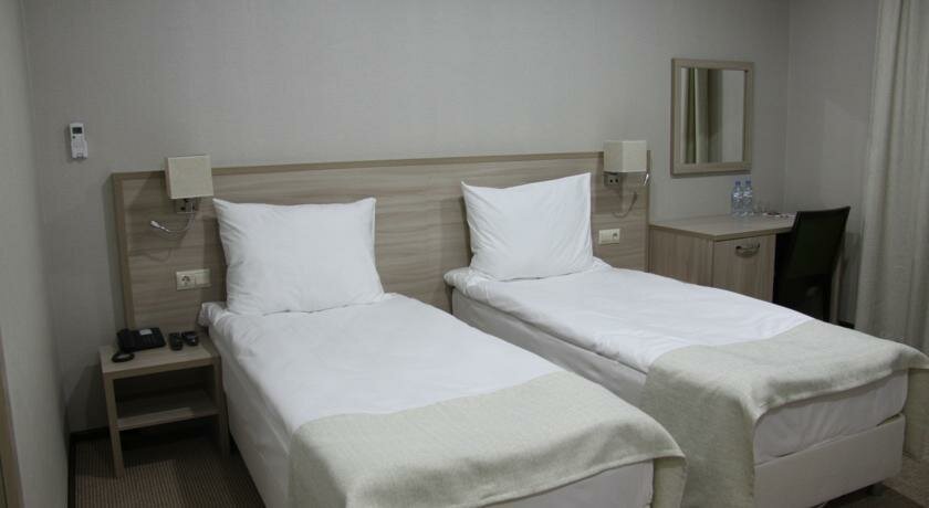 Всем добра! Гостиница очень понравилась: в номере очень чисто(номер стандарт), есть необходимый комплект полотенец, гель и шампунь, фен, тв, холодильник, тапочки, просторный шкаф, письменный стол, кондиционер, хорошая 2-х спальная кровать, зеркала. Очень отзывчивый персонал — поскольку попросил постирать рубашку, все сделали. На этаже гладильная доска и утюг. Очень плотный завтрак получился, ассортимент хороший. По работе необходим был компьютер, дали возможность поработать и распечатать доки. Спасибо Вам большое. Рекомендую отелю доложить: маленький тюбик зубной пасты, одноразовую зубную щётку и по возможности решить вопрос с давлением воды в душевой, поскольку многим нравится когда есть сильный напор в кране)