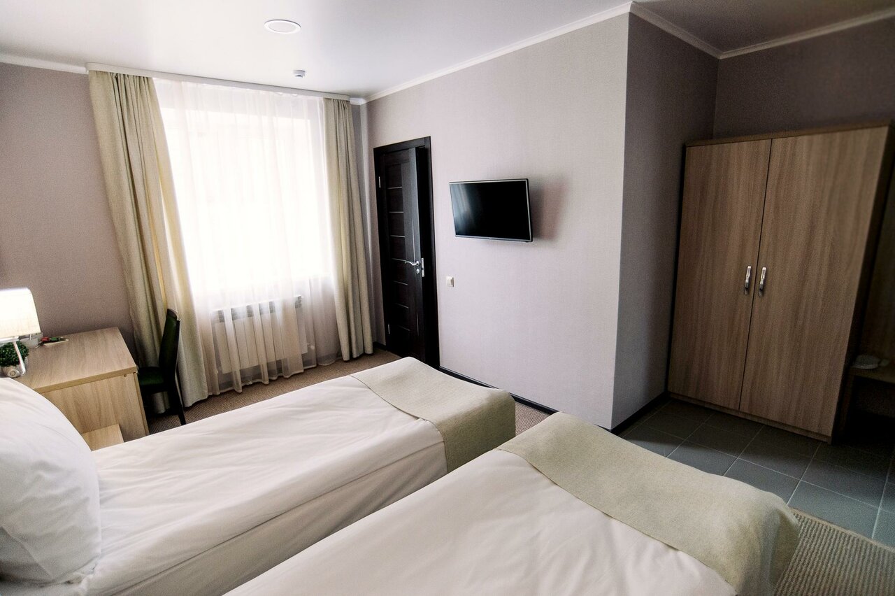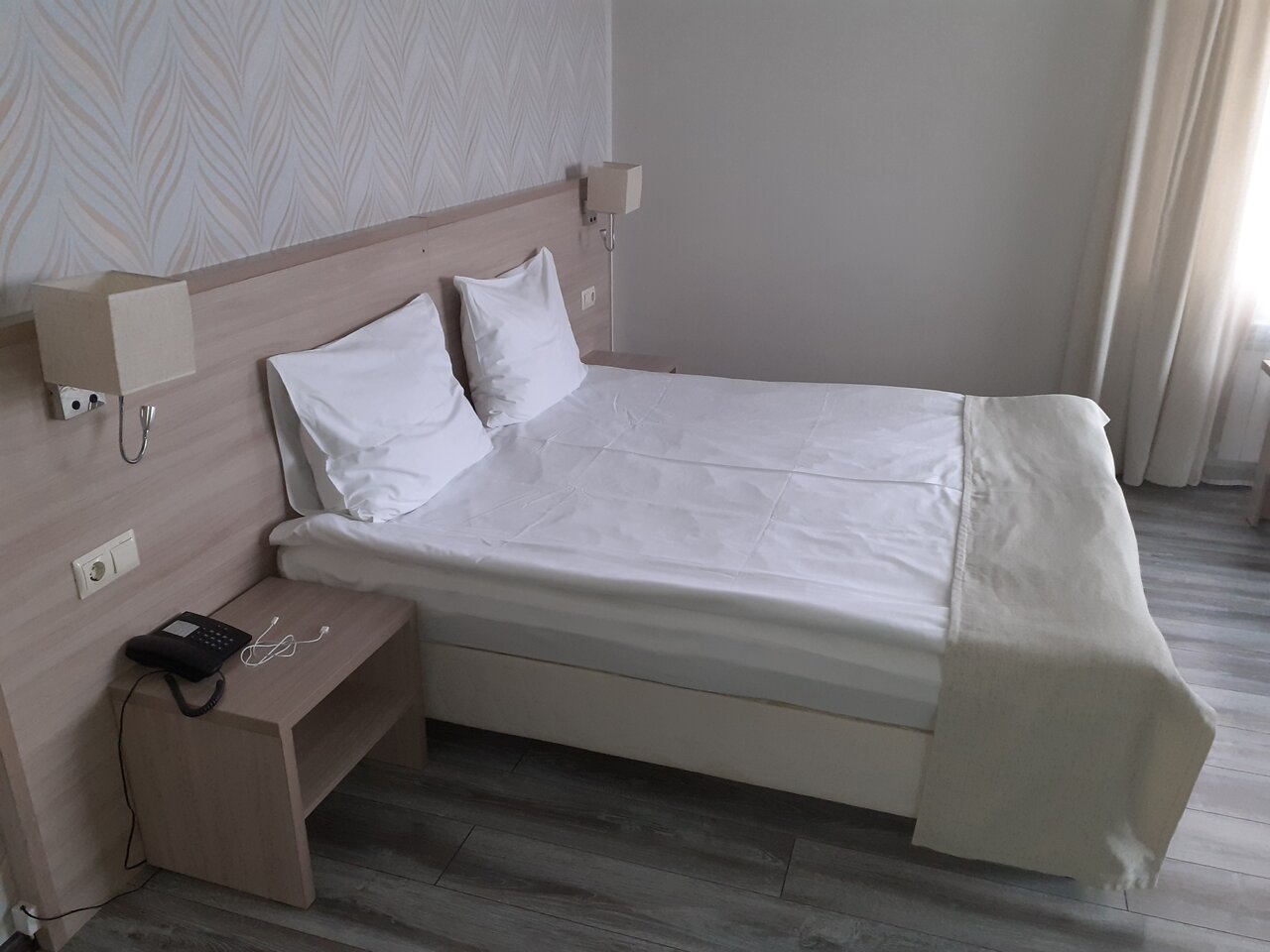 Двухместный номер ( СТАНДАРТ ) с одной кроватью или двумя отдельными.Комфортабельный номер общей площадью 20м2. Светлый, в постельных тонах. Освещение номера отеля: центральное потолочное, прикроватное. Мебелирован всем необходимым
