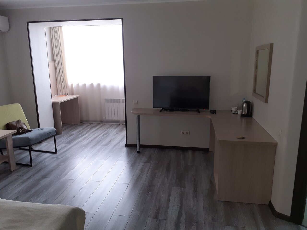 Улучшенный, комфортный номер Люкс в гостинице Астрахани – площадь, которого составляет 38 м2 приятно порадует гостей и жителей города. Светлая мебель, сделанная на заказ придает уют: компактная прихожая с большим зеркалом ( рожек для обуви...