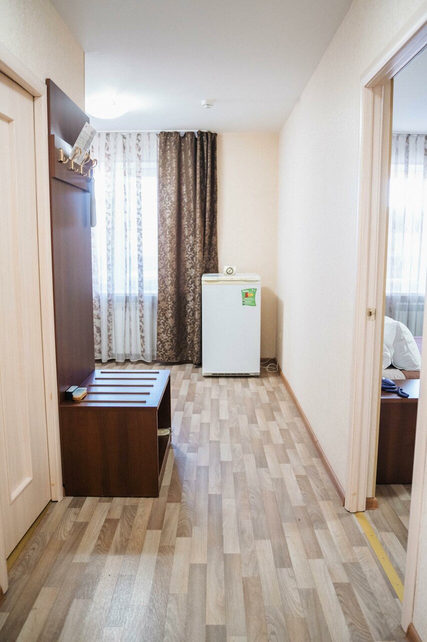 Номера совковые, душевые кабины вечно протекают, поддоны в большинстве номеров лопнутые, розетки непродуманные, кровати многие проваливаются, Wi-Fi конченный, скорость бывает падает до нуля. Живут за счёт расселения лукойловских и сотрудников лаборатории, поэтому с заселением голова не болит. Единственный плюс — близко с аэропортом.
