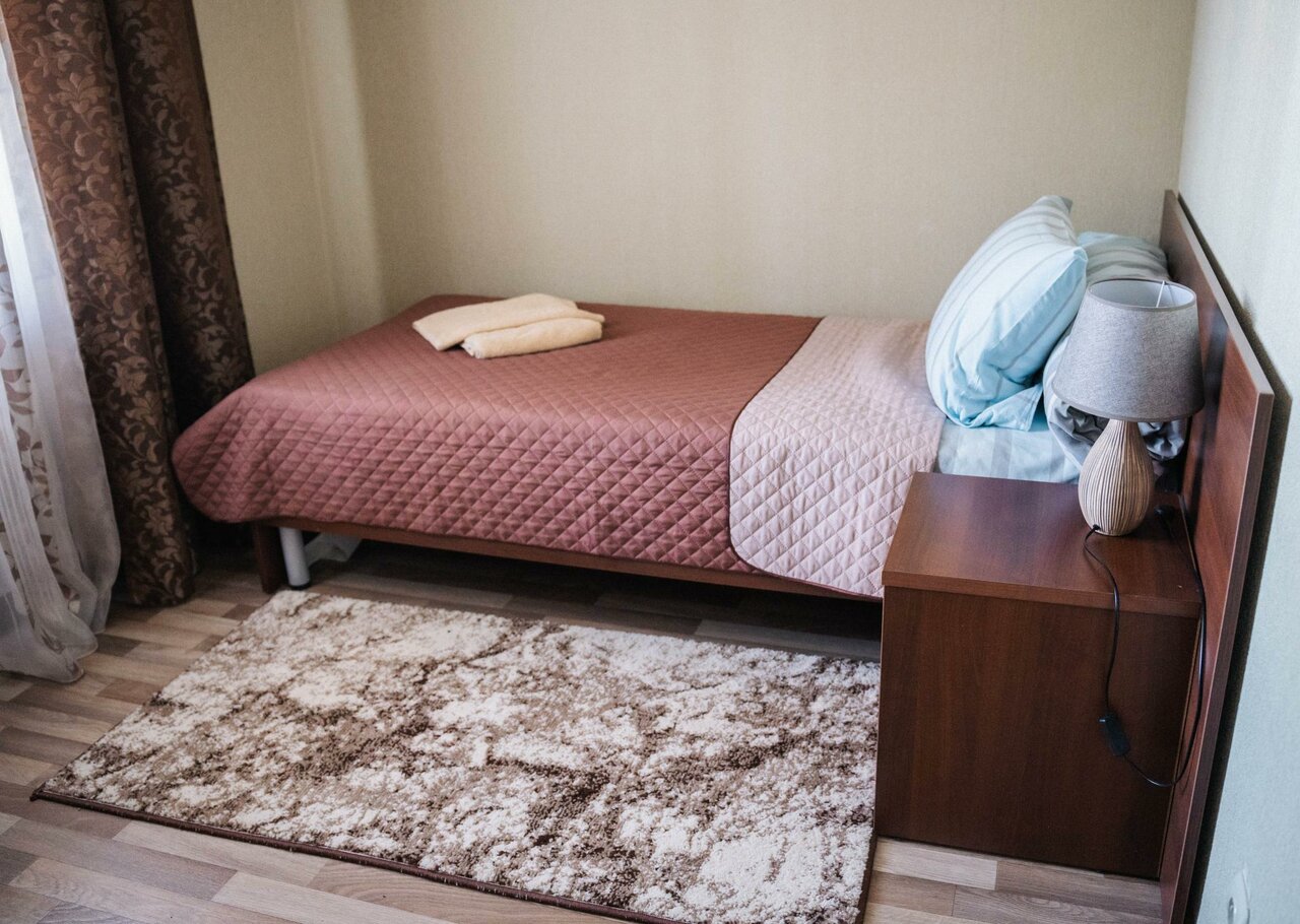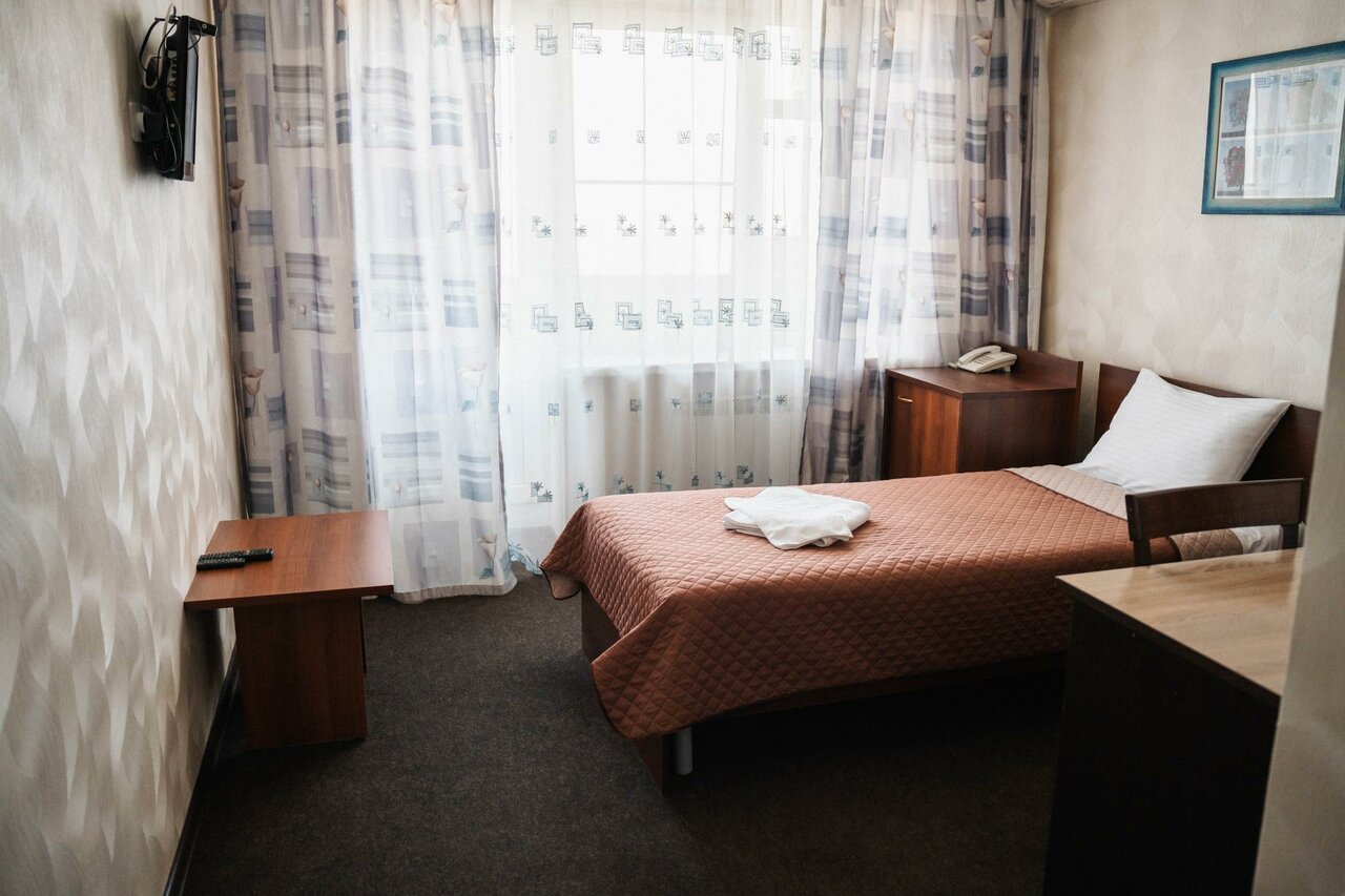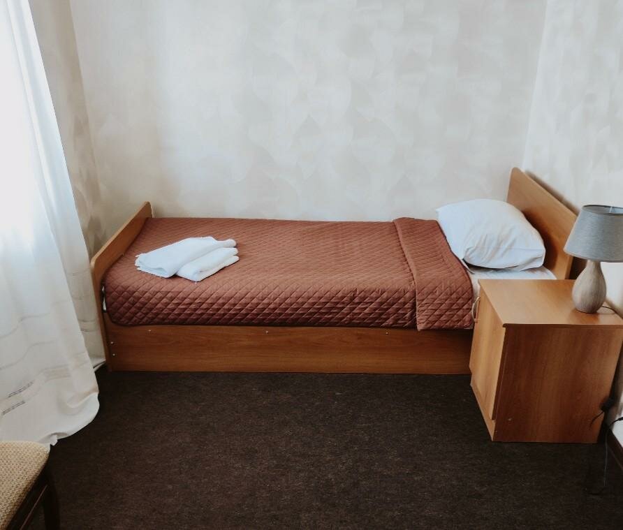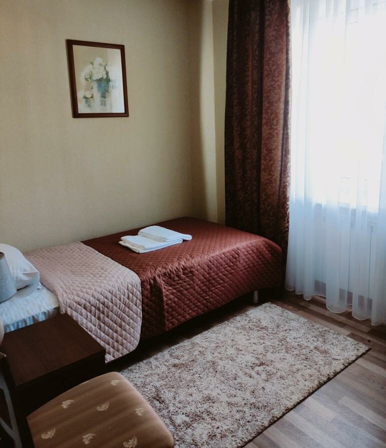 Хорошая гостиница, из плюсов, недалеко от аэропорта, чистая, номера бюджетные но все что нужно на месте, цены адекватные, олноместный номер от 1600р., на первом этаже есть кафе, там можно поесть за вполне нормальную цену, из минусов нет лифта, чемоданы если есть таскать по лестнице самому).