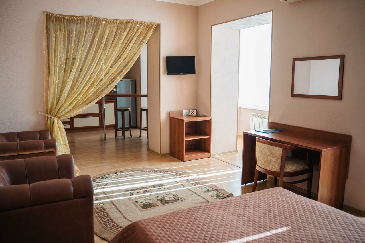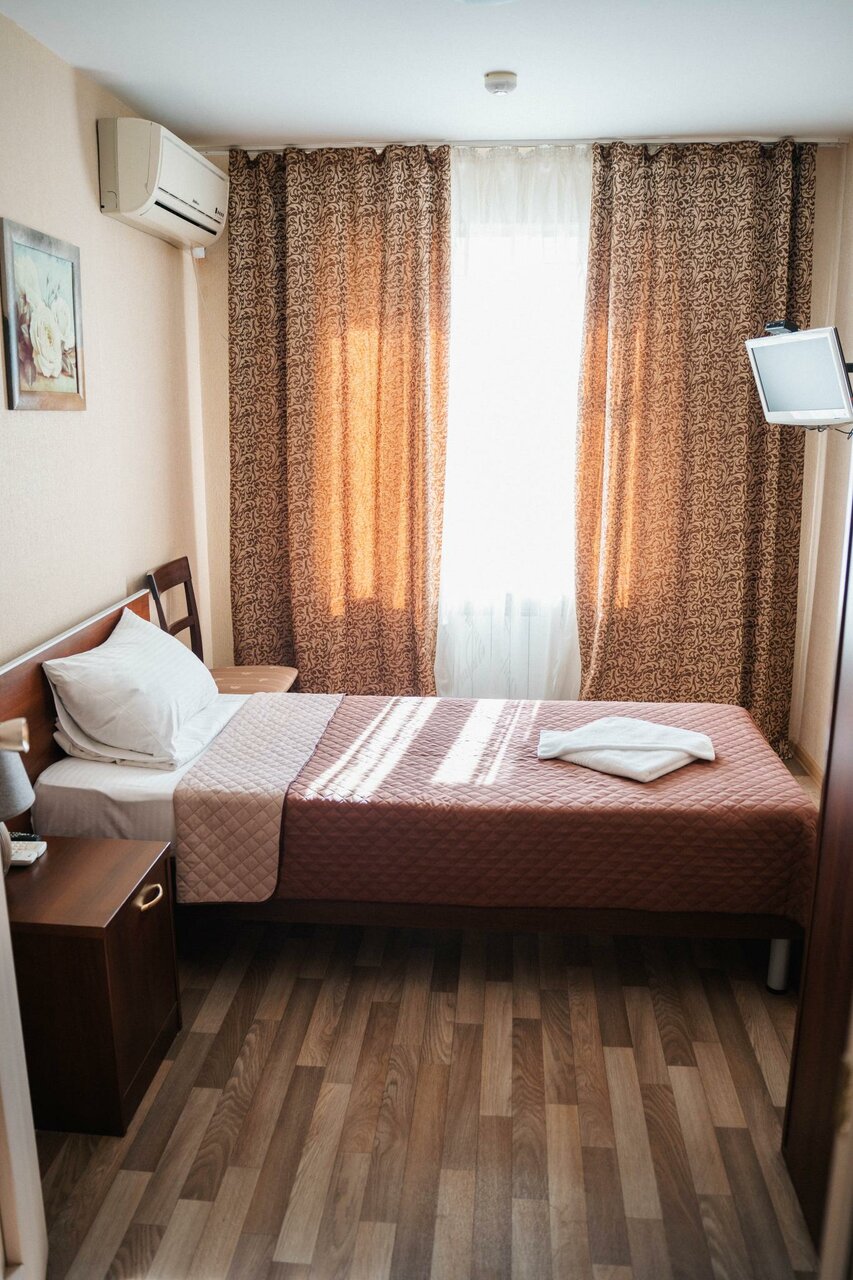 Хорошая гостиница, ценник немного выше чем у других, но есть за что. Брал стандартный номер. Везде идеальная чистота, постельное бельё капельно белое, раздельно туалет и душевая кабина, 2 балкона, если кто курит оценит. Сплит система, телевизор, чайник и холодильник работают хорошо, культурный и квалификацированный персонал