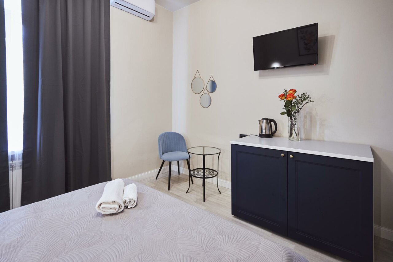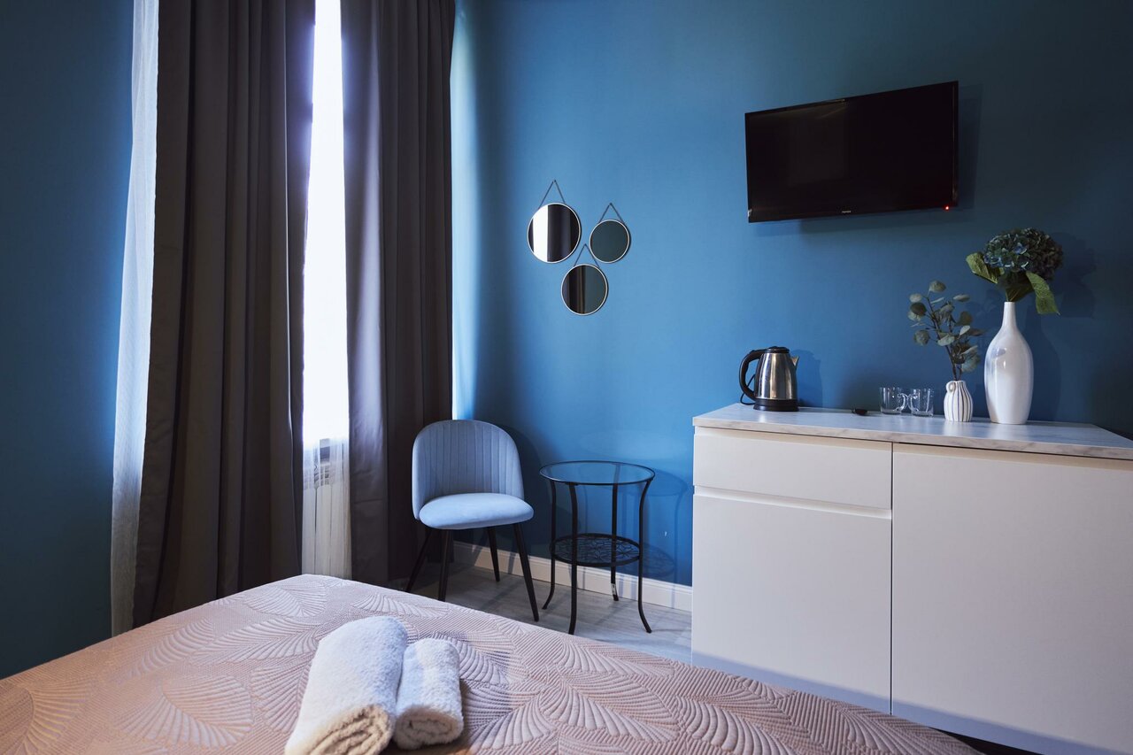 Отличный отель для проживания не один день. Отзывчивый персонал. Чисто, уютно. На первом этаже есть кухня, где можно разогреть еду, попить чай или кофе и, даже, что-топриготовить. В пешей доступности гастроном ‘Михайловский’ (там очень вкусные пироги). От достопримечательностей далековато, но это не помеха.