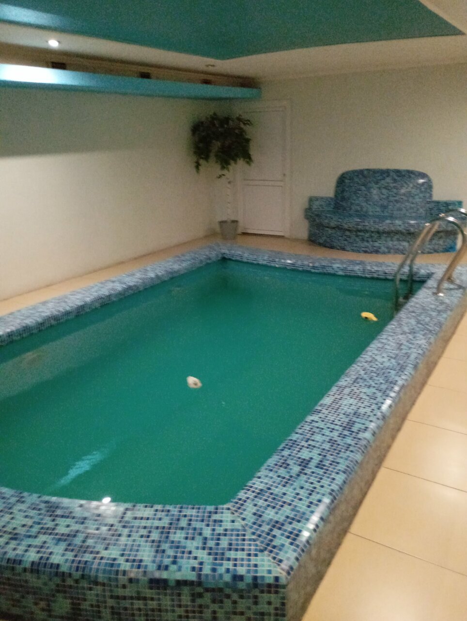 Сауна, бассейн понравились(по моему это цокольный этаж) Были в марте,нагрелись, накупались от души)) А в номере было холодно. Просто переночевать.Персонал вежливый. Магазинчик рядом.