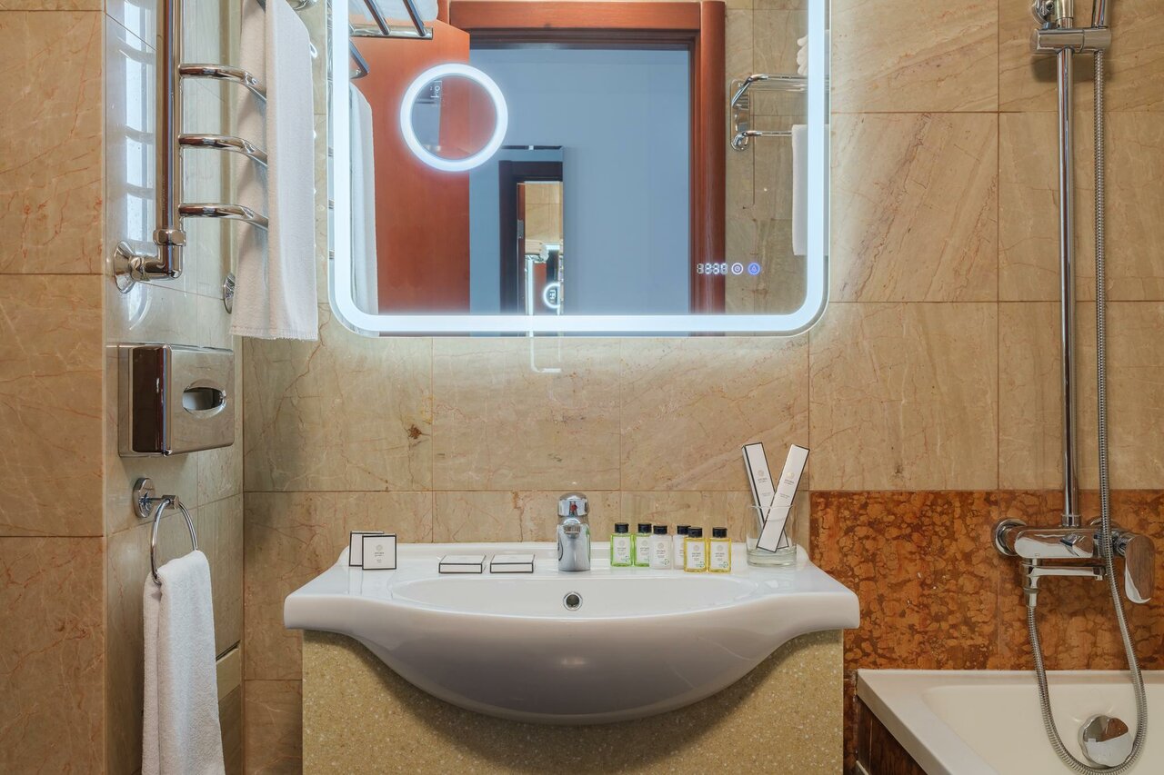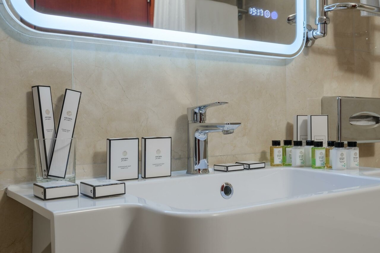 Хороший отель. В целом. Но есть одно ‘но’ — в период проживания с 10 по 13 сентября 2024 г. был неприятный инцидент. После уборки номера 11 сентября (жила в 507) до смешного — у меня пропал тональный крем и тканевая маска для лица. Но при этом были забыты персоналом в ванной комнате чистящее средство и тряпка. Я позвонила на ресепшен, почему-то попала на милую девушку в баре, которая передала информацию и минут через 5 ко мне пришла грубоватая женщина, которая забрала средство и тряпку и сказала, что никто ничего у меня не брал)))) Круть, мне, видимо, приснилось, что они у меня были и я с утра пользовалась тональником. В общем — если пропадают мелочи, то понятно, что дело времени и пропадать будут дорогие вещи. При выезде на ресепшен ещё раз данную ситуацию подсветила. А так — хорошие бани, бассейн, завтраки и номера. Но из-за воровства -3*