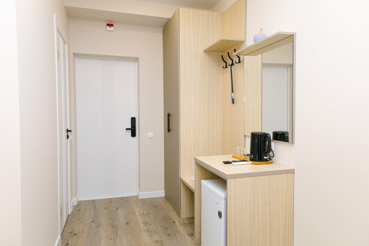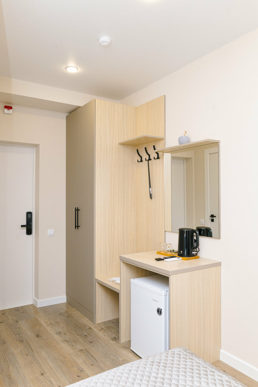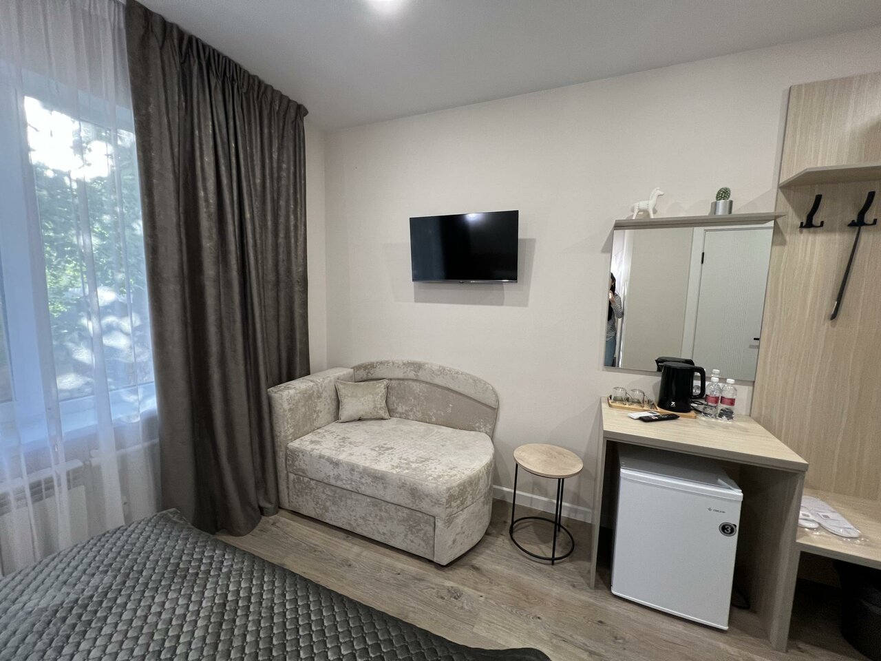 Отличный отель! Всё НОВОЕ, очень удобно и уютно. Приехали почти ночью, очень любезно встретили, всё показали. Отдельное Спасибо администратору Веронике — очень доброжелательная, вежливая, всё подробно объяснила! Утром угощают свежесваренным кофе, печенье, конфетами. В номере сплит система, телевизор с выходом в Интернет. Хорошее постельное бельё, полотенца. Только приятные впечатления от проживания