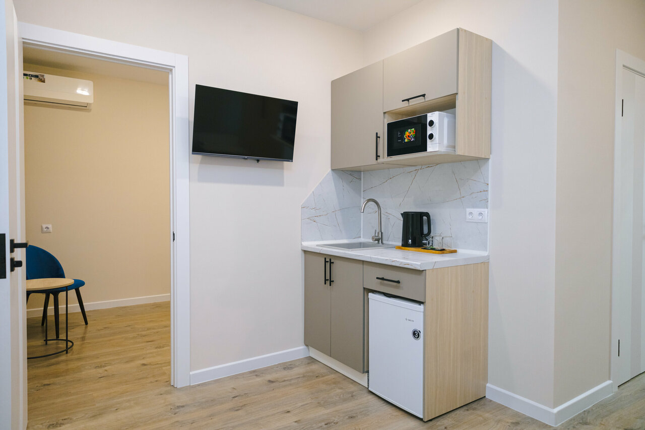 Все продумано, есть кухня, можно заказать завтрак, кофе машина. Уютно и очень чисто! Рекомендую
