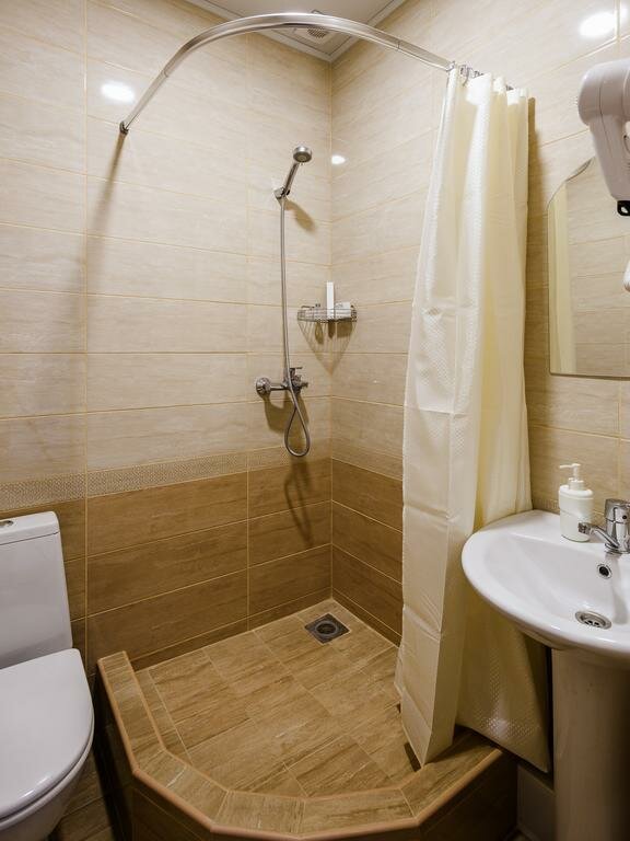 Номера на третьем этаже, но нет лифта. Под номерами действует танцевальная студи до 21 часа. Заказывал только завтрак, питание оказалось очень скромным. Мебель новая, кровать удобная, телевизор большой программы есть, но дальше россии 24 не листал. Wi-Fi достаточно быстрый для Астрахани. Белье постельное не поменяли ни разу за три дня. Ванная комната удобная Набор для ванны (шампунь, пасту, щетку и иголку с нитками) предоставили только один раз при заезде. Убирают номер вовремя в коридоре чисто.