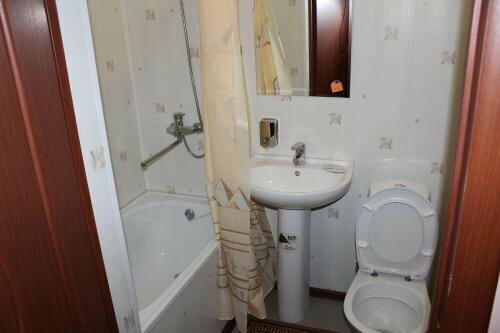 Заезд 0 часов 21.09, выезд 12 часов 22.09. Оплата за 2 суток, при этом сутки не было СОВСЕМ ни холодной, ни горячей воды. На просьбу оставить вещи на пару часов после 12 отказано: ‘камера хранения на вокзале, а у нас нет’. Завтрак- бутерброд с тонким листиком вареной колбасы, листик сыра, чоко-пай и йогурт. Позитивен только веселый подвижный паук в ванной люкса, возможно от постоянного запаха табачного дыма. Неоднократно ранее останавлиаался, но больше — ни ногой,