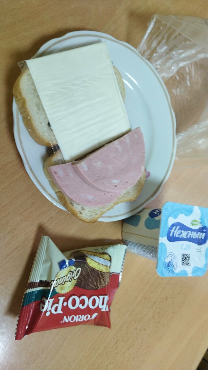 - Включенный завтрак (бутерброды, йогурт, печенье).