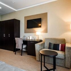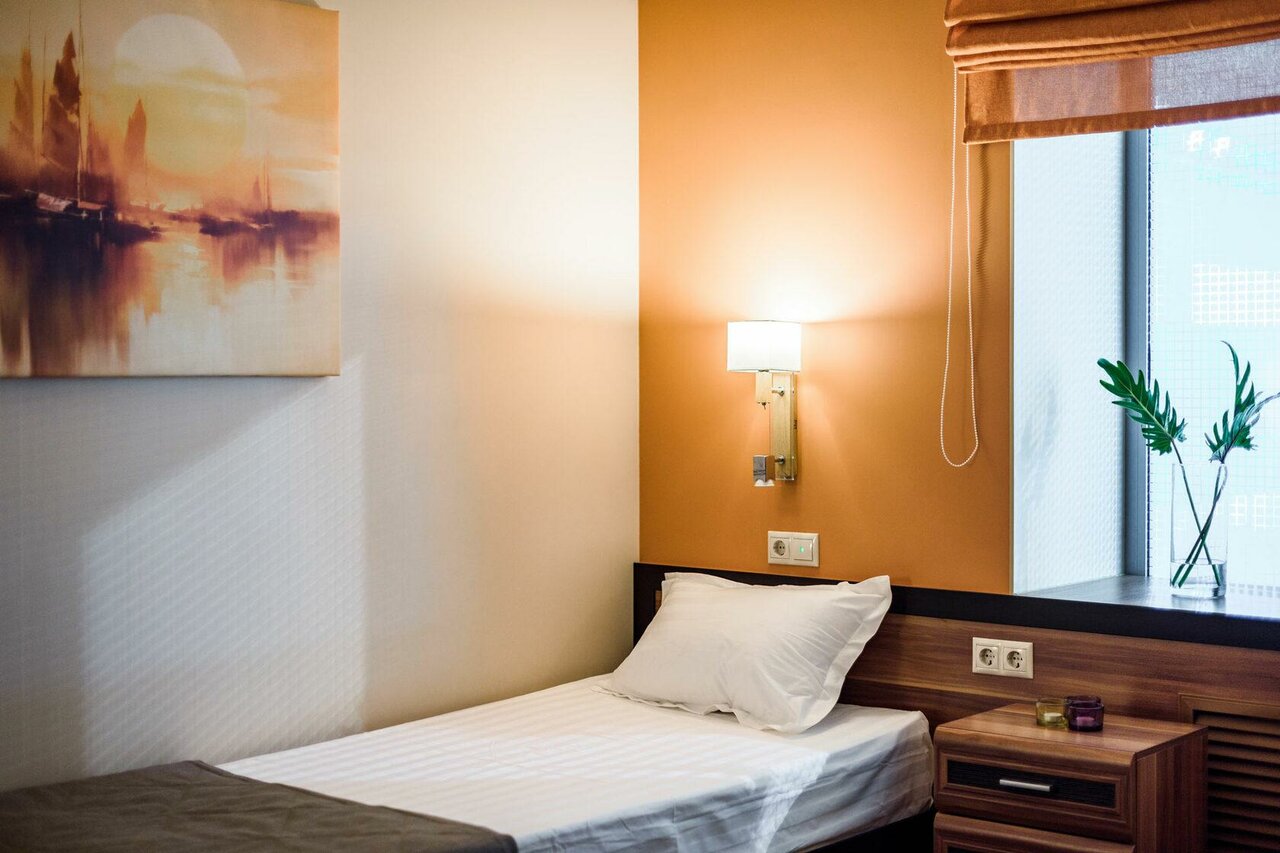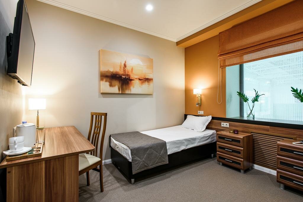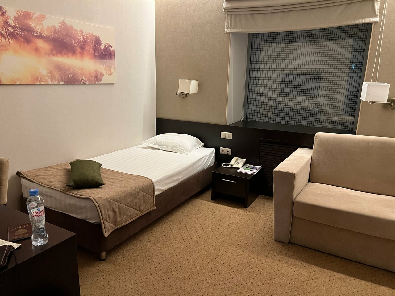Все понравилось, единственное, что было не обычно, это в номерах на одного гостя, окна выходят на крытый теннисный корт. Но в принципе это не напрягало. А так все чисто, в номерах есть все необходимое. Единственное просьба, в номера ставить не газированную воду, а обычную, ведь приехав ночью хочется попить чай, а вода только в кулер в коридоре. Спасибо большое за хороший отель.