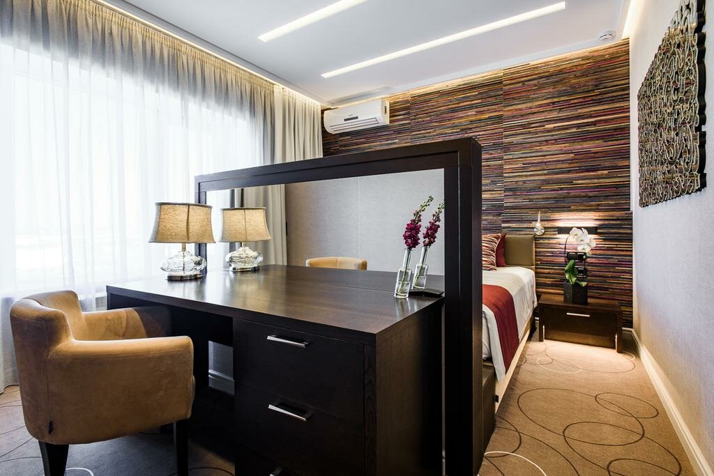 Современный отель. Плюсы: интерьер, атмосфера. Минусы — сторонние шумы