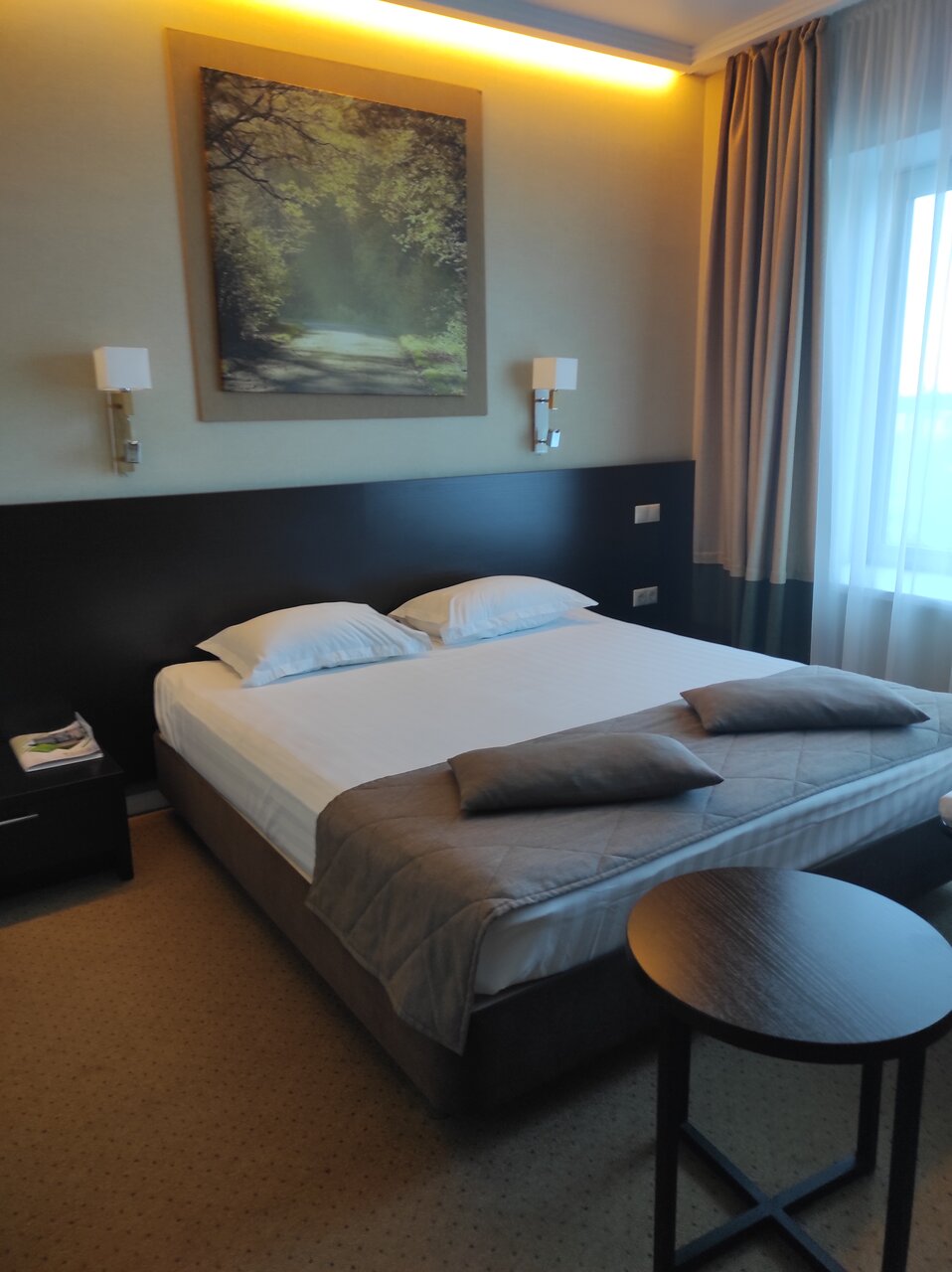 Обслуживание на высшем уровне! Персонал доброжелательный, отношение к клиентам с уважением. Номер чистый, бельё отличное в хорошем качестве и комплектации, сантехника в отличном состоянии. Единственный недочет, в туалетной комнате в контейнере отсутствуют гигиенические пакеты. Расположение отеля удобно для гостей города.