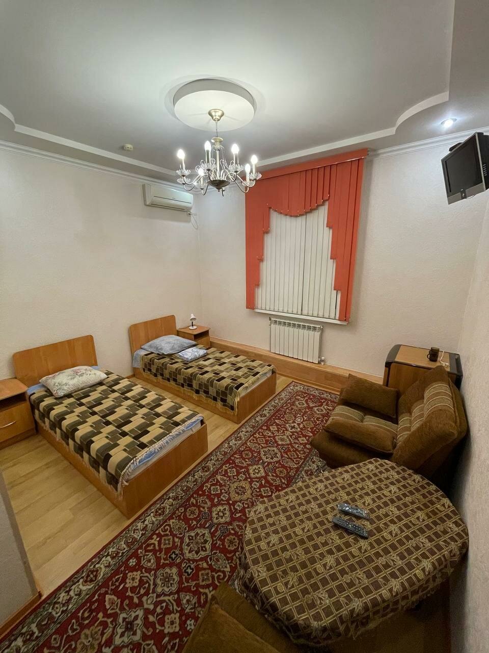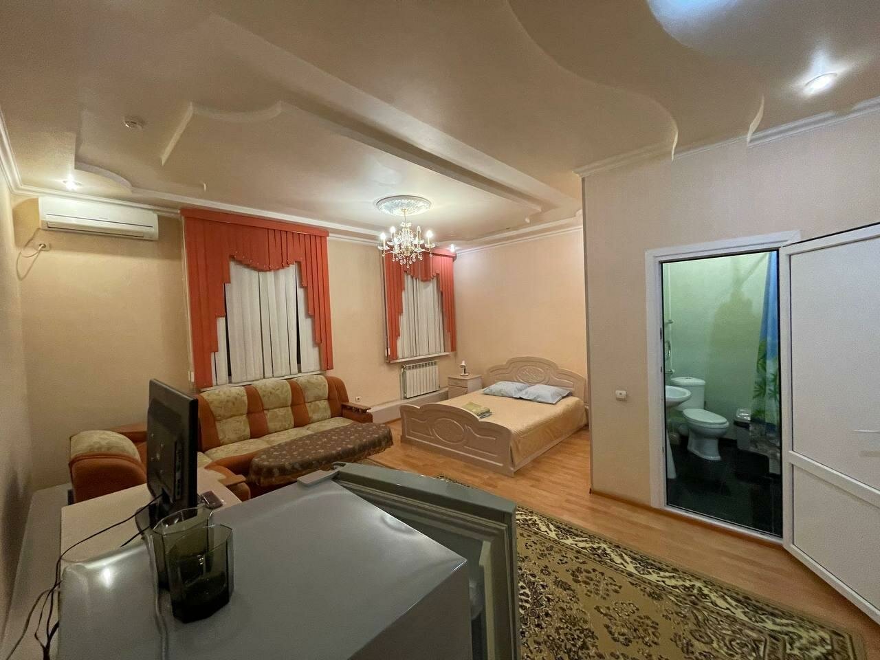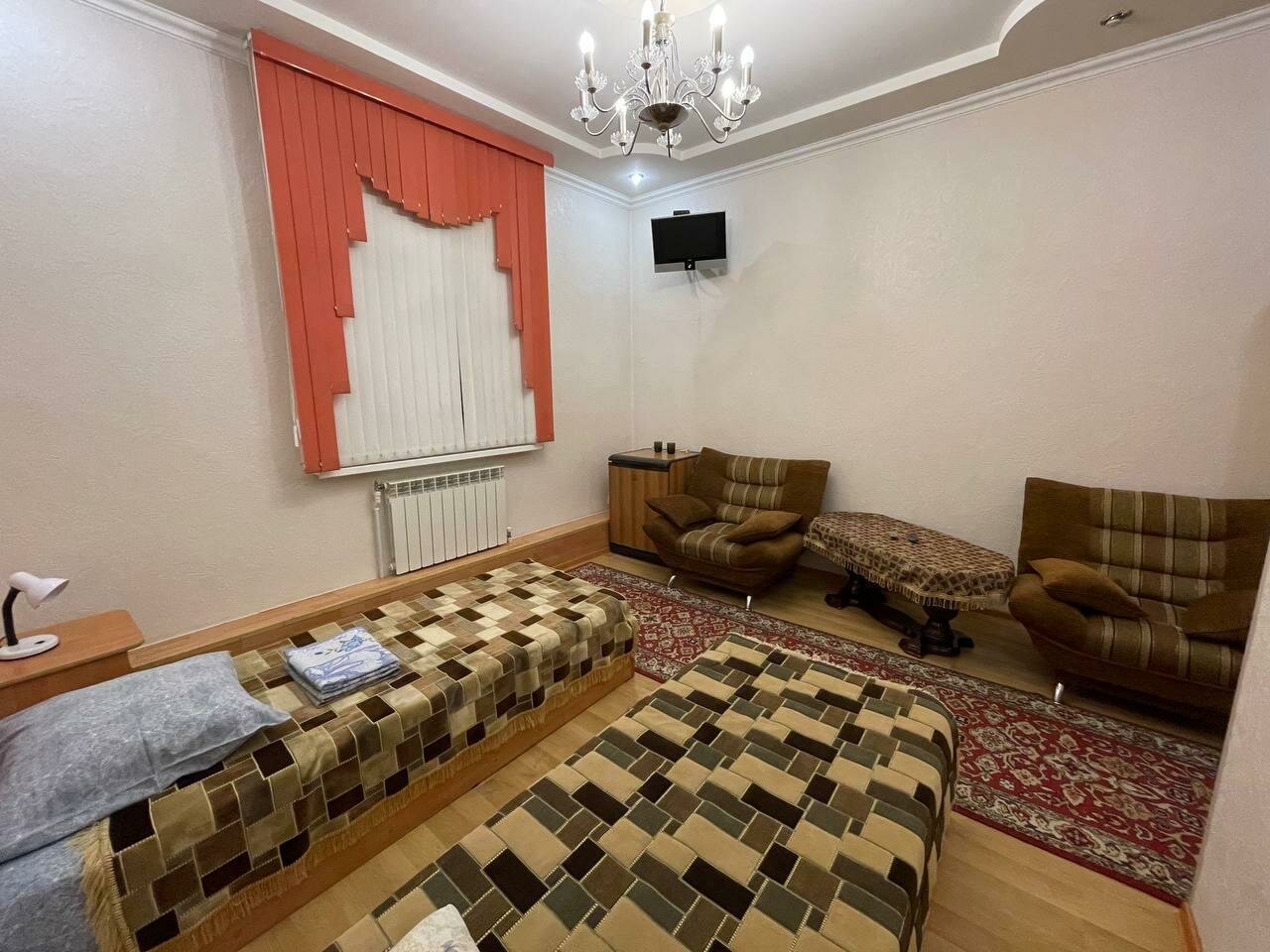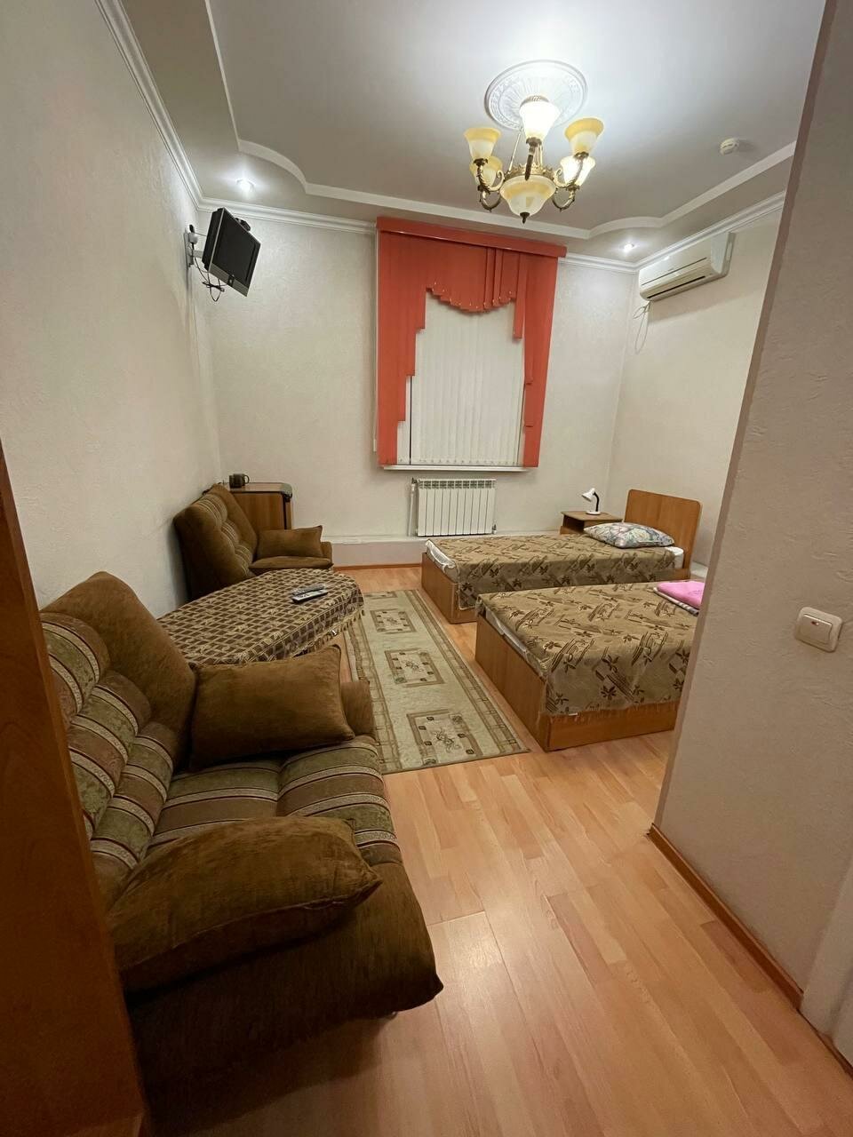 В номере чисто. Уборка в номере производиться быстро и качественно. Персонал любезный. Из минусов можно отнести непонятные ковры на полу как в деревне у бабушки. И пульт от телевизора нужен для того чтобы дотянуться до кнопки включения. Так как батарейки в пульте севшие. Причем это и в других номерах). А так есть и холодильник. Чайник с чашками но нет чайных ложек. Ну и в номере не было мыла и шампуня.