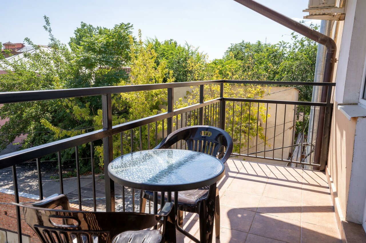 Отель на 2 часа из 90-х с сауной и бильярдом, с запахом затхлой воды из бассейна. За неделю проживания уборки не было ни разу! Балкон для курения, т к вид ужасен!