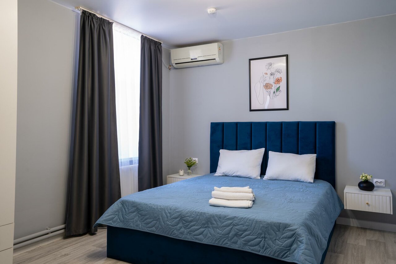 - Удобная кровать и кондиционер.