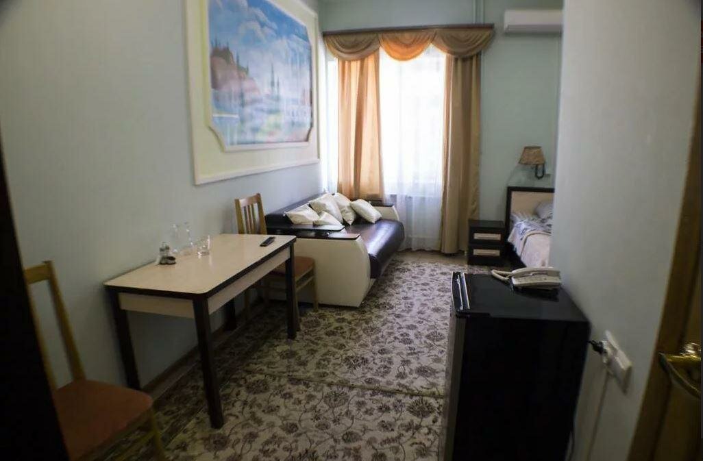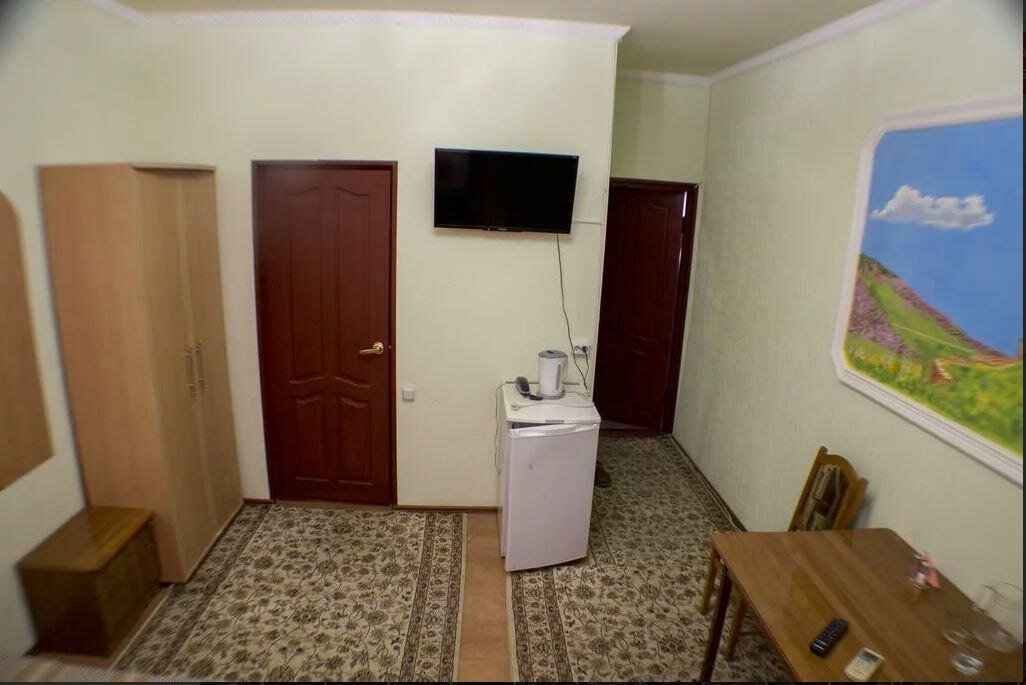двухместный номер с 1-й большой двуспальной кроватью, шкаф-гардероб, совместный санузел туалет-душевая, телевизор с плоским экраном и TV каналами, бесплатный Wi-Fi, кондиционер, холодильник, фен, комплект полотенец, мини парфюмерия, тапочки.