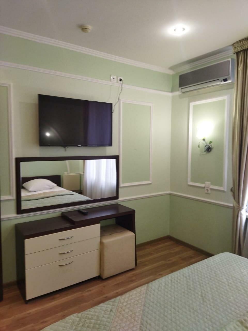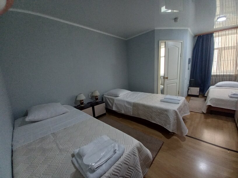 Номер 4х. Нас было 3е. 4 кровати, шкаф, стулья, тумбочки, ночники-светильники, мебель уставшая, бельё чистое; холодильник большой; кондиционер работает, НО ИЗ КОНДИЦИОНЕРА СЫПАЛАСЬ ХЛОПЬЯМИ ГРЯЗЬ, ПЫЛЬ, ЭТО НЕПРИЯТНО!!! ванная комната: душевая кабина, дверцы кабины отвалились поправили сами, в туалете нет вытяжки совсем. В целом на 1-2 ночи терпимо, но сервис, уборка номера, чистота, мебель требуется изменений.