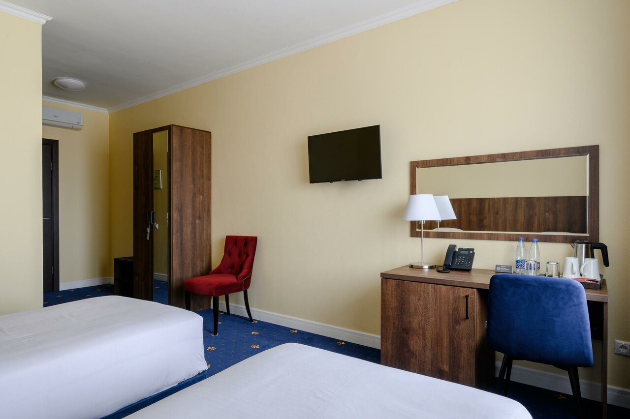 Гостиница очень хорошая. Приветливый персонал. Но есть одно. Номер двух — местный с одним халатом, и без посуды. В номере не было средства для гигиены. Хотя номер стоил 6000 тысяч рублей. Фото не делали.