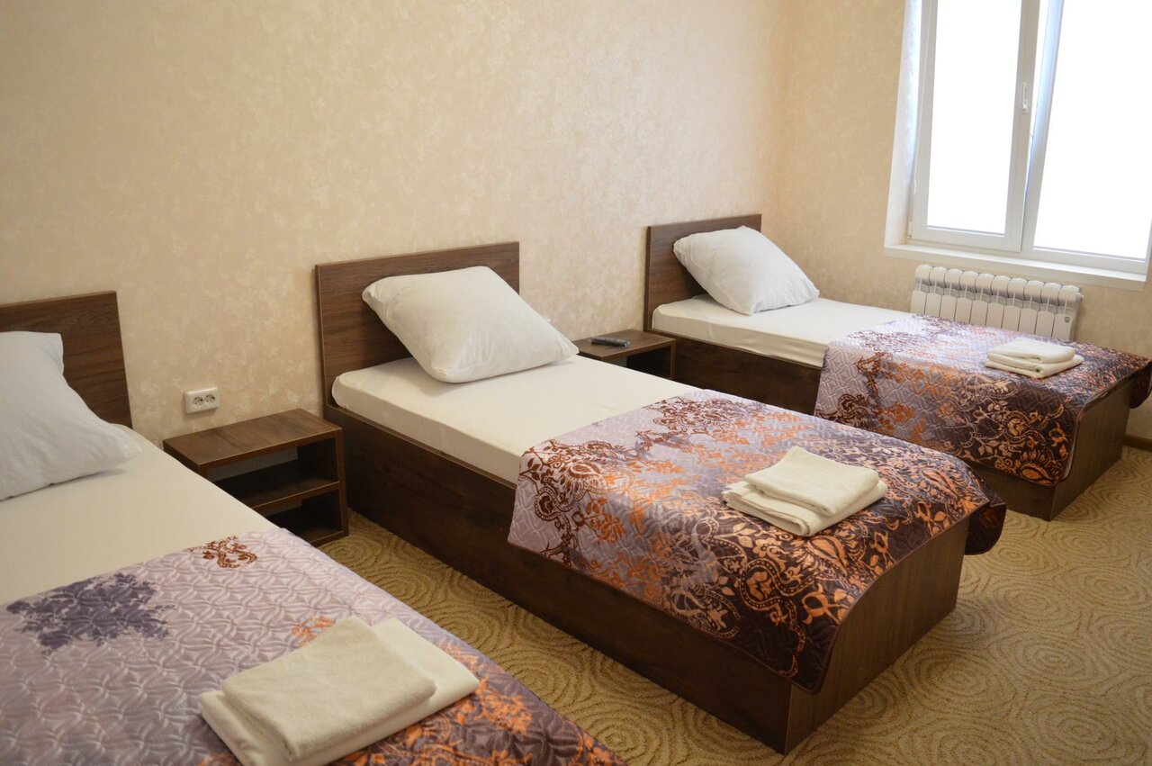 Номер категории 'Стандарт трехместный' расчитан на проживание 3-х человек. Номер со всеми удобствами - телевизор, телефон, сплит-система, холодильник. Санузел и ванная комната в номере.