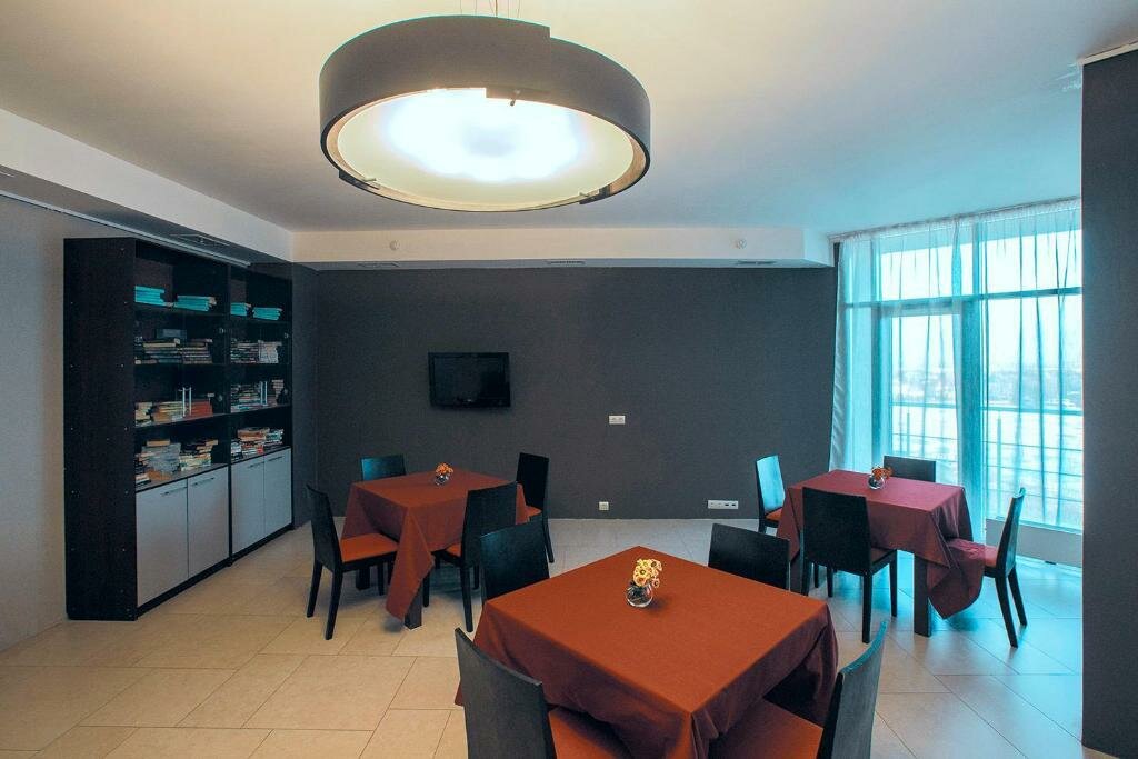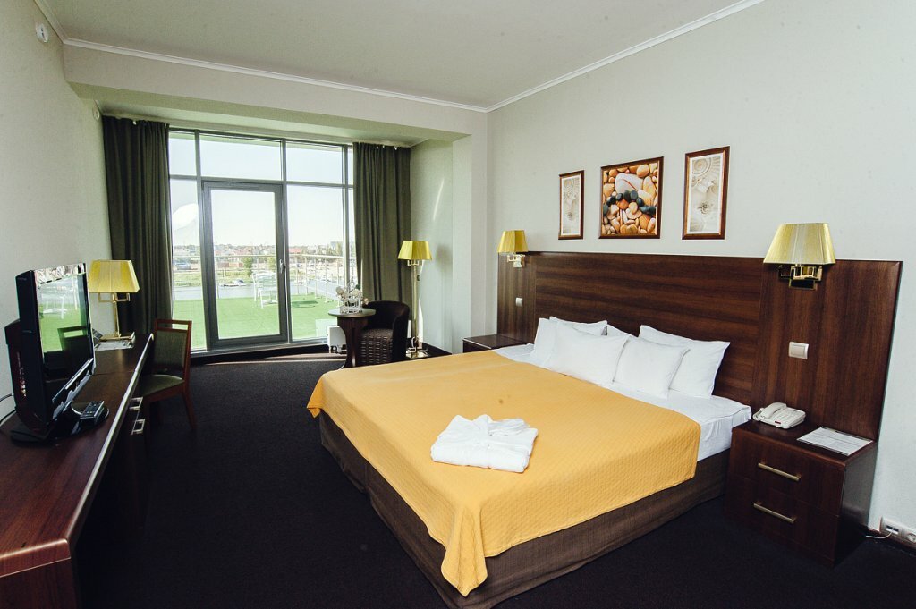 Первые впечатления. Находится в тихом месте, номера с видом на водную гладь, к аэропорту рукой подать, в номере чисто, в ванной вместо шторки стеклянная панель, персонал вежливый, прилегающая территория убрана. Часть берега принадлежит, скорее всего, рядом расположенному предприятию. Возле части берега швартуются суда. Один плюс из этого, что они не гудят. В общем, пока доволен. Завтрак включен в стоимость проживания. Выбор есть. Приготовлено вкусно. Мне понравилось. Обед за деньги. Взял комплексный. Очень понравился суп. С едой очень удобно. Качество хорошее, цена не кусается. С парковкой автомобиля ни каких проблем, места достаточно. Второй раз остановлюсь здесь.