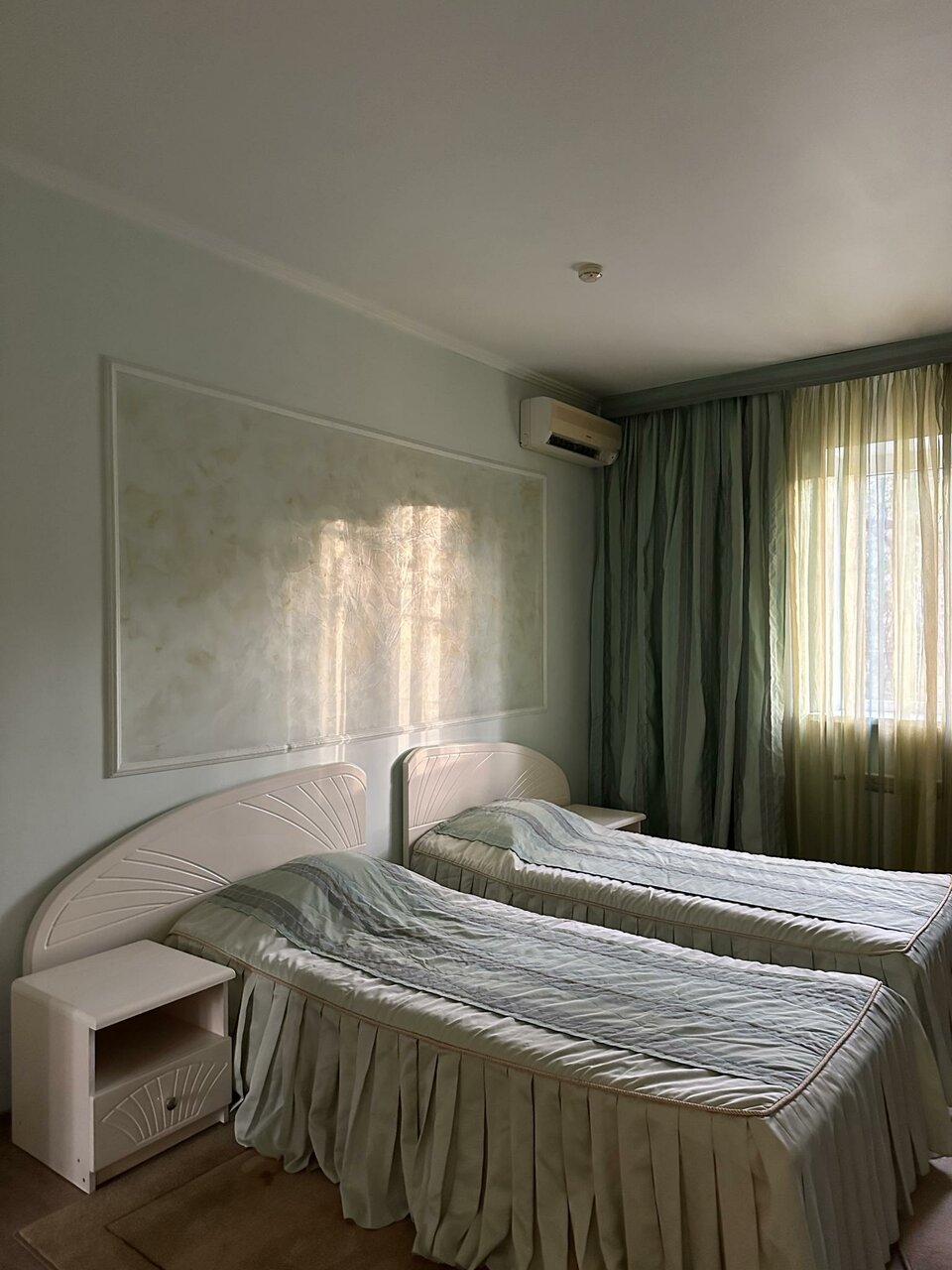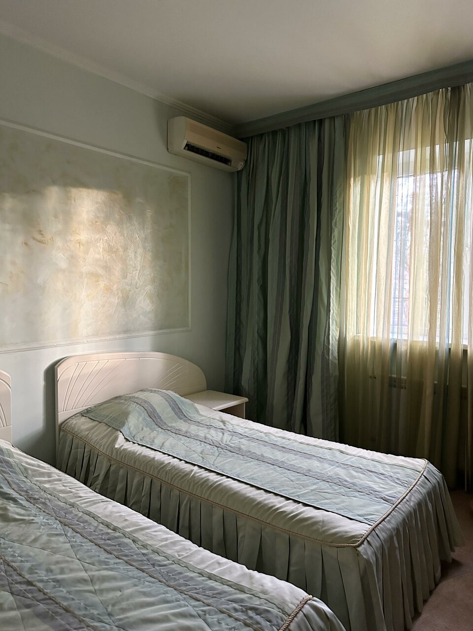 Двухместный номер с двумя раздельными односпальными кроватями. В номере расположен санузел с душевой, а также рабочий стол, кондиционер, ТВ и мини-холодильник.Стоимость за 1 человека - 2400 рублейСтоимость за 2 людей - 2600 рублей