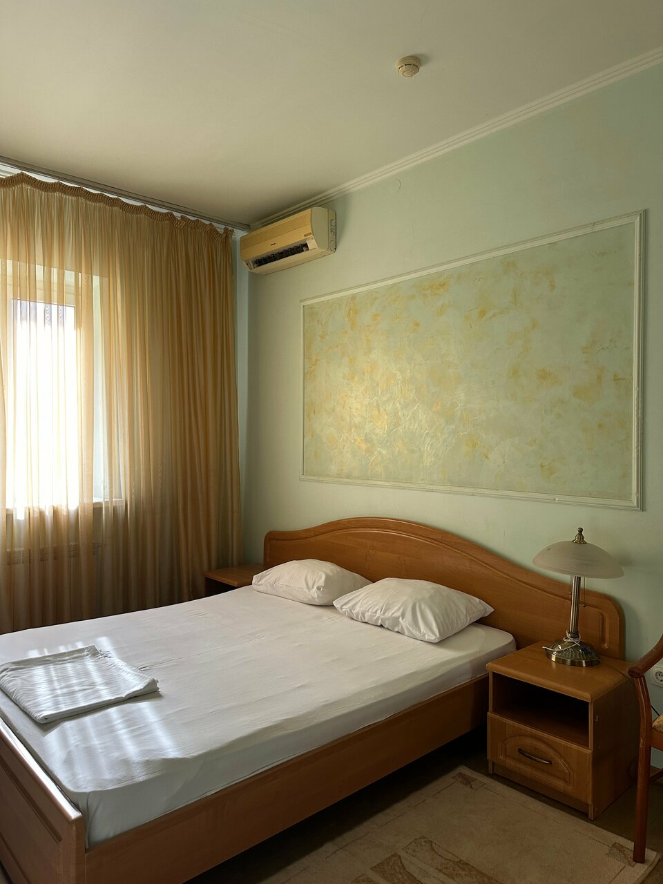 Номера чистые, цена не высокая. Подходит для ночвки в пути. Персонал максимально обходителен. Однако досталась порванная простынь, пролженный матрац, неработающий кондей. 4ре звезды