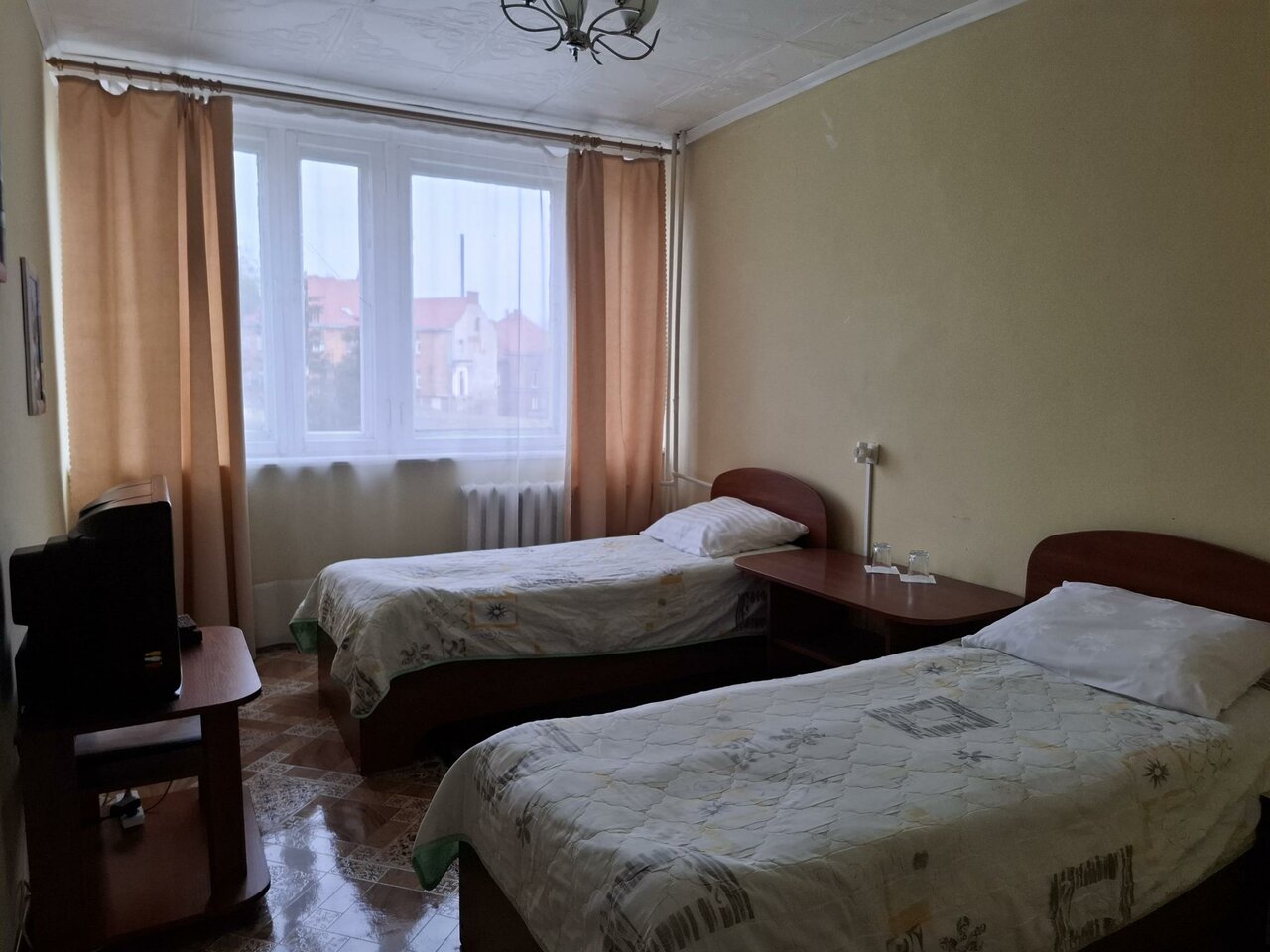 8Вы эту картинку где взяли? Таких номеров в этой гостинице нет!!! Кровати очень старые, спать сложно… Холодильника, чайника в номере нет.