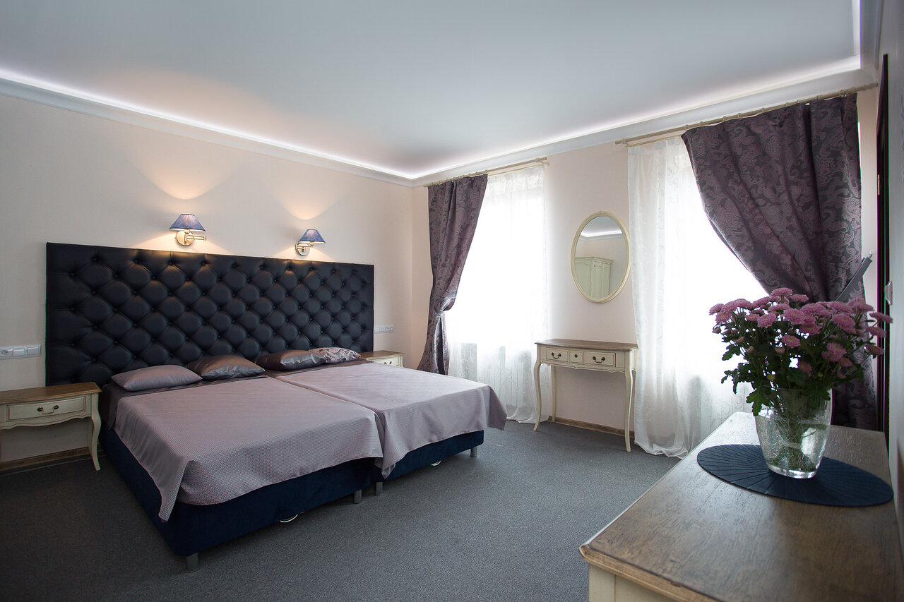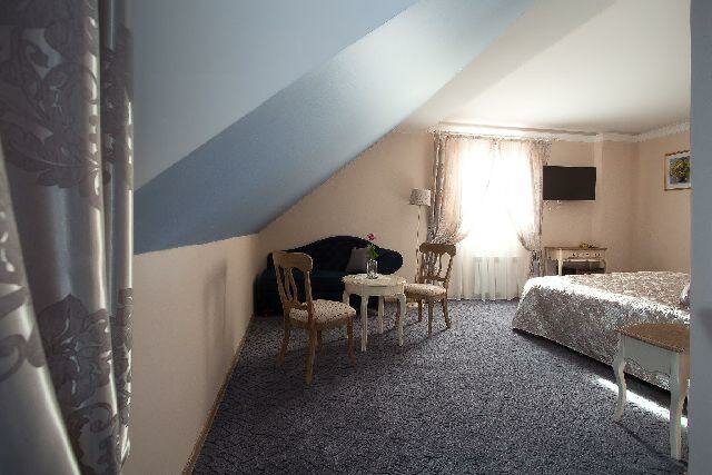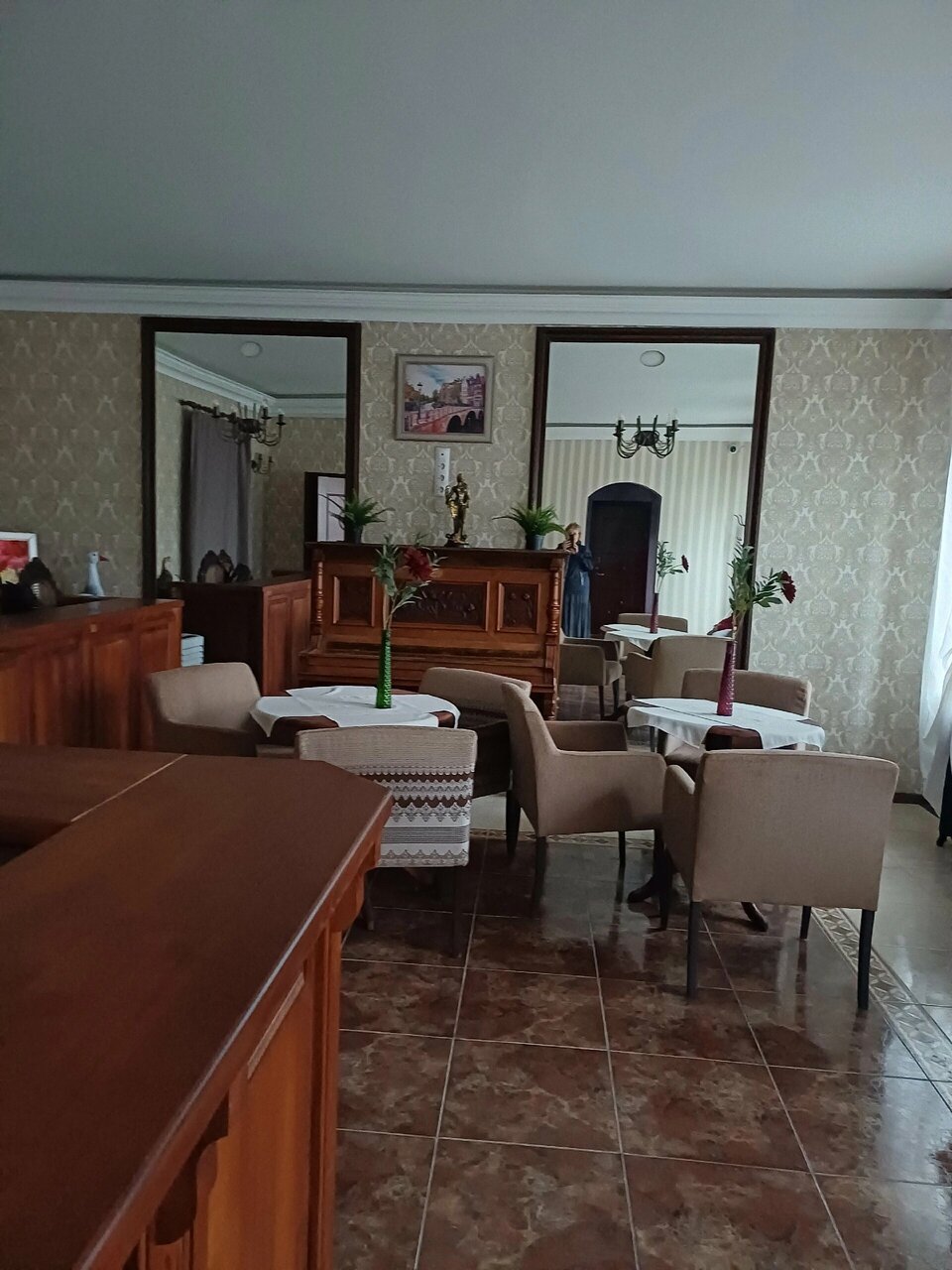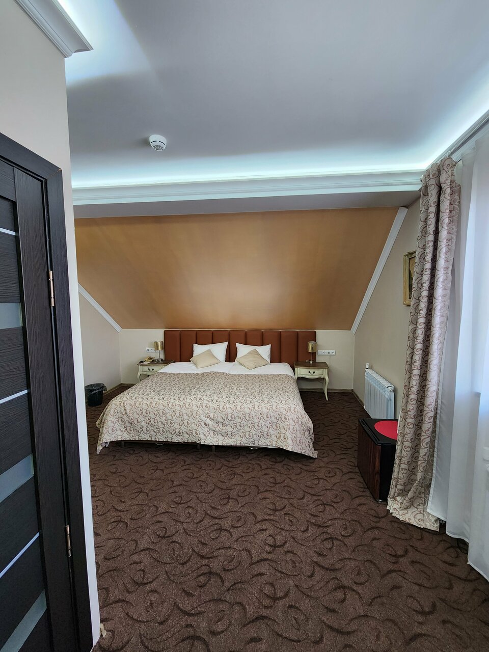 Начну с минусов, так как они подпортили общее впечатление об отеле. Отановилась на 1 ночь, номер Люкс 3650р. С недостатками в виде текущего унитаза ещё можно смерться, но с отсутствием горячей воды- нет. На мой вопрос, в чем причина отсутствие гор.воды, ответили, что на ресепшене должны были предупредить о её отсутствие и что сломан бойлер, который чинят ( в 21 час). О том что гор. воды, меня на ресепшен не предупредили, так как нас оформлял официант из одноимённого ресторана. Менеджер вступила в перепалку, начала доказывать, что нас предупреждали об отсутствии воды.. В общем не особо клиетоориентиоованный персонал к сожалению, жаль нет конкурентов у отеля в Багратионовске. Приехал с дороги, сломан бойлер.. что нужно проезжаещему, отдыхающему — постель и горячая вода помыться. Хворает уровень!