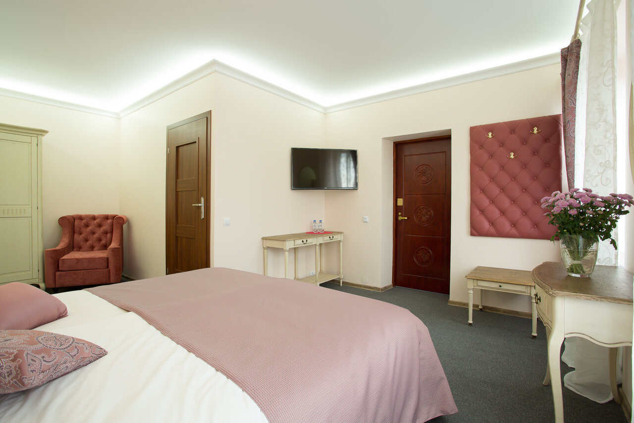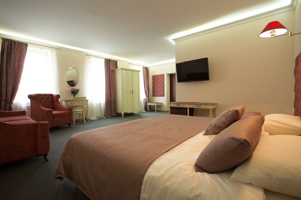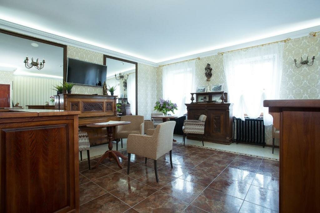 Начну с минусов, так как они подпортили общее впечатление об отеле. Отановилась на 1 ночь, номер Люкс 3650р. С недостатками в виде текущего унитаза ещё можно смерться, но с отсутствием горячей воды- нет. На мой вопрос, в чем причина отсутствие гор.воды, ответили, что на ресепшене должны были предупредить о её отсутствие и что сломан бойлер, который чинят ( в 21 час). О том что гор. воды, меня на ресепшен не предупредили, так как нас оформлял официант из одноимённого ресторана. Менеджер вступила в перепалку, начала доказывать, что нас предупреждали об отсутствии воды.. В общем не особо клиетоориентиоованный персонал к сожалению, жаль нет конкурентов у отеля в Багратионовске. Приехал с дороги, сломан бойлер.. что нужно проезжаещему, отдыхающему — постель и горячая вода помыться. Хворает уровень!