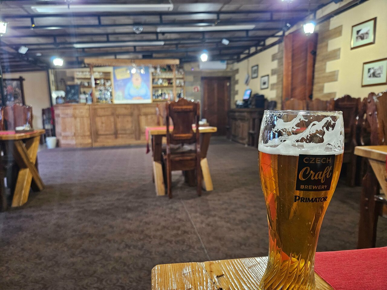 приличное место, можно поиграть в настольный футбол, есть бильярд, кухня не сказать что изысканная, но вполне сытно, цены норм, борщ порадовал — с рюмашкой дают!
