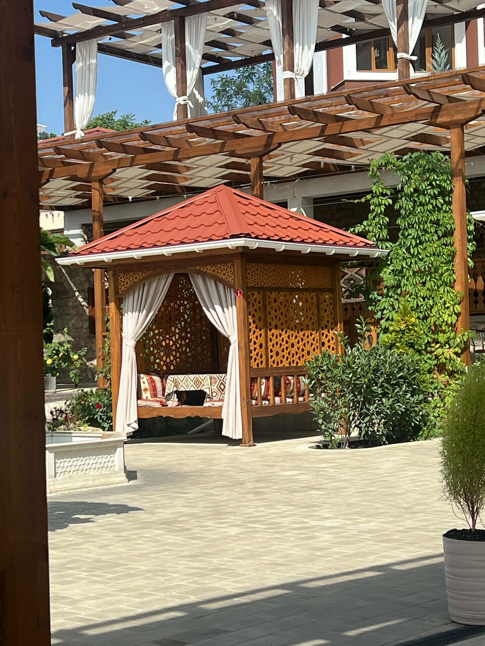 Кухня потрясающая, обслуживание на высшем уровне! Номера чистые, сама гостиница как миниатюрная Турция. Всем советую приехать а Бахчисарай и остановиться в этом месте.