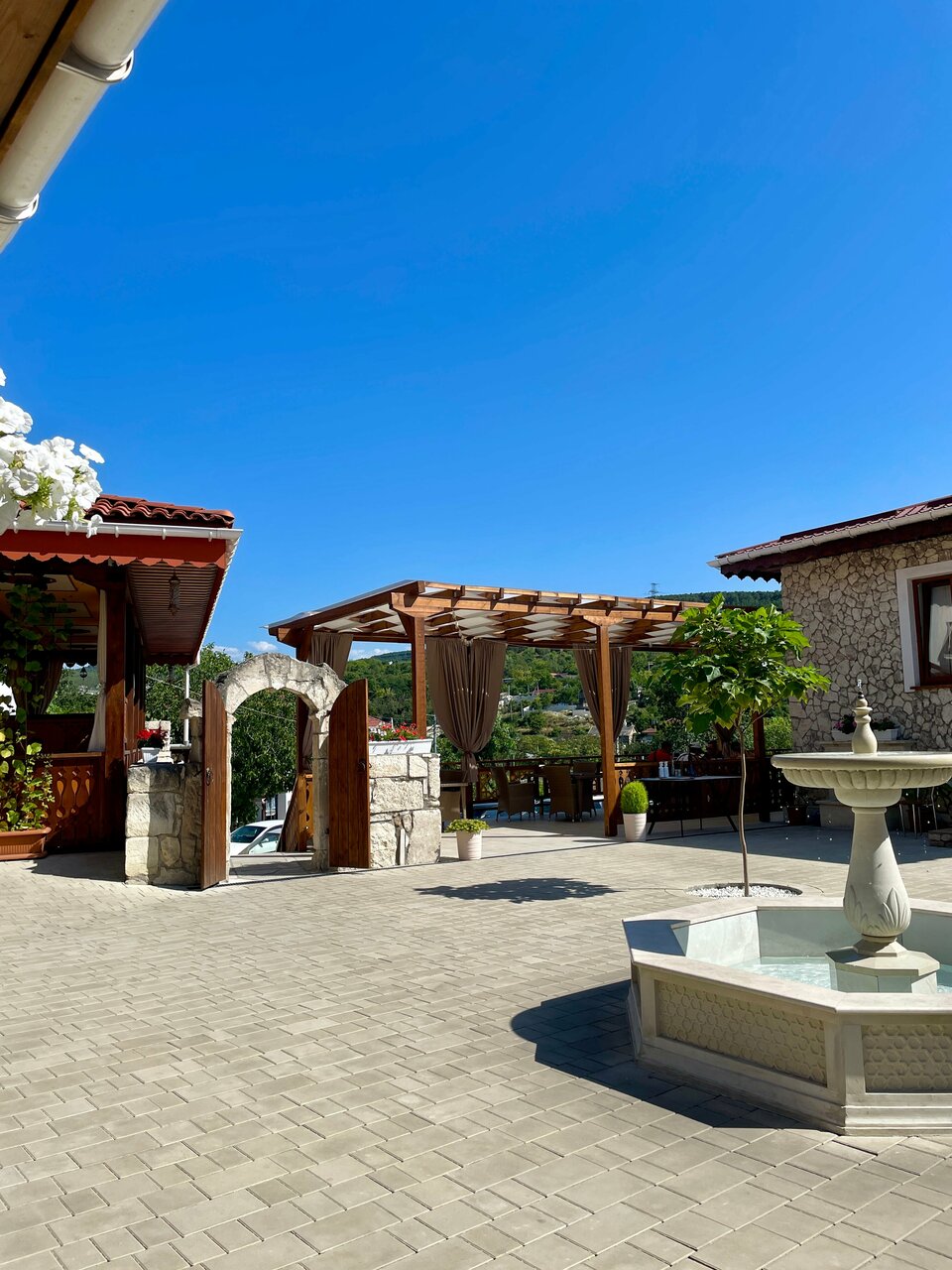 Гостиница находиться в старом городе. Из окна открывается прекрасный вид и видно Ханский Дворец. В гостинице свежий ремонт, чисто, комфортно, хорошая шумоизоляция. Уборка номера и смена полотенца каждый день. Во дворе уютно, есть фонтан, много места для отдыха. Так же имеется свое кафе с национальной кухней.