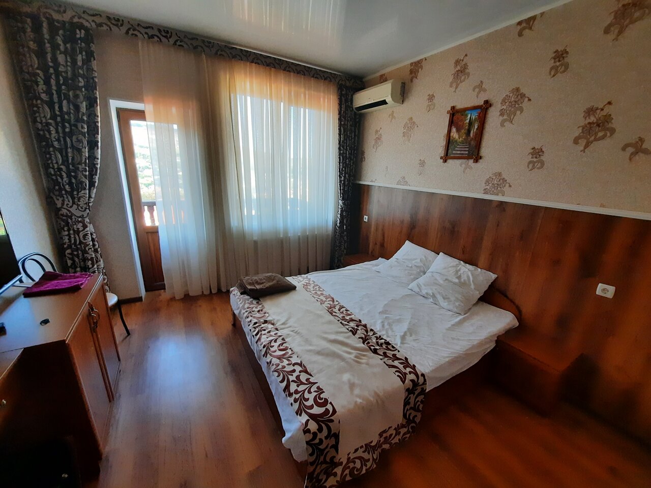 Просторный однокомнатный номер общей площадью 24-26 кв. м. в котором могут разместится 3 человека. В номере есть все необходимое для комфортного проживания; санузел, банные принадлежности, спутниковое ТВ., кондиционер, холодильник, WI-FI