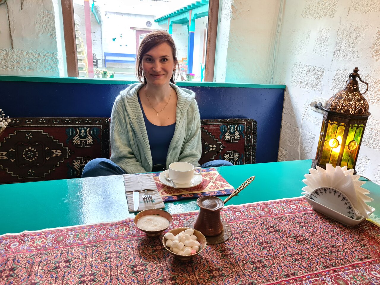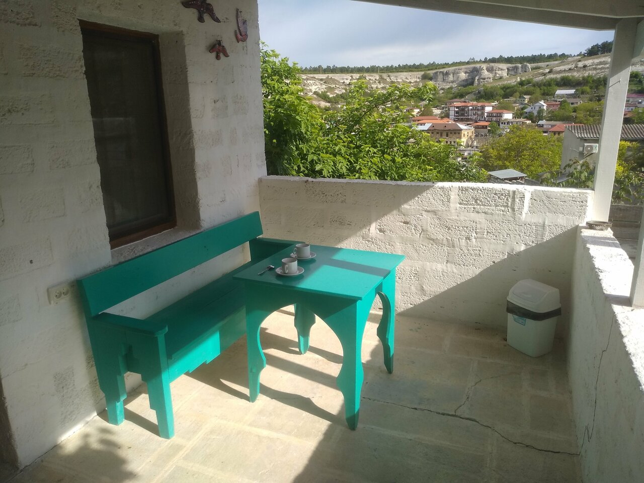 Отличное место, тихо, спокойно, вид на старый город потрясающий, есть парковка, очень атмосферное место Из — : хотелось бы вентилятор и очень средняя кухня, но в Бахчисарае много вкусных мест 😉