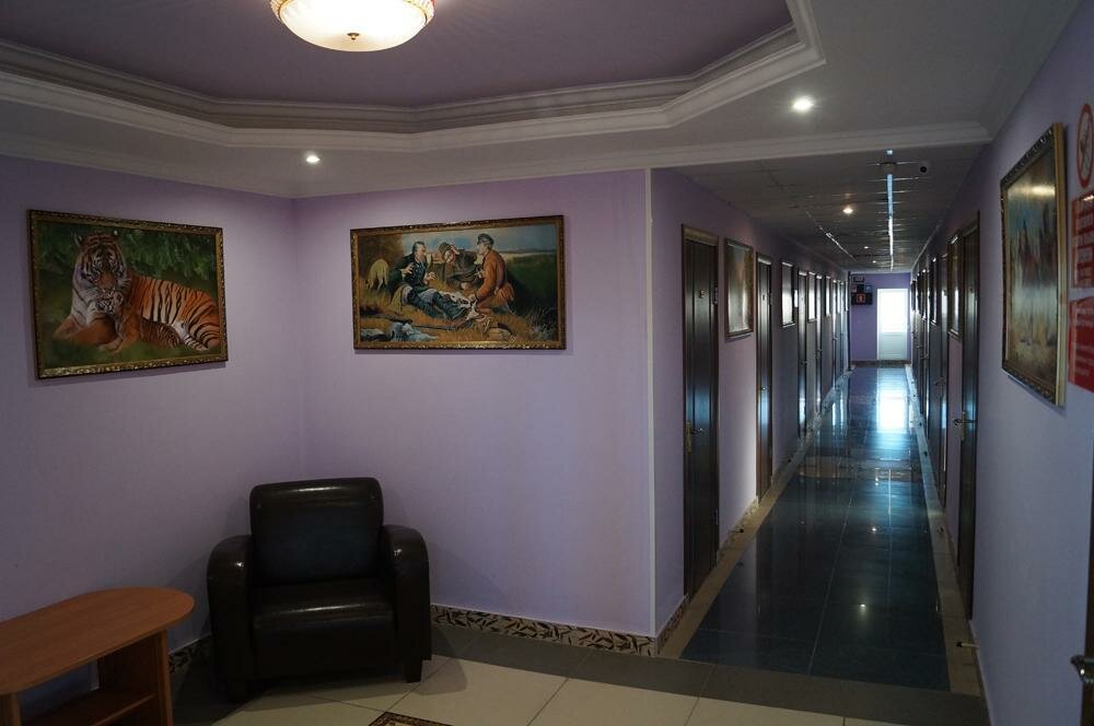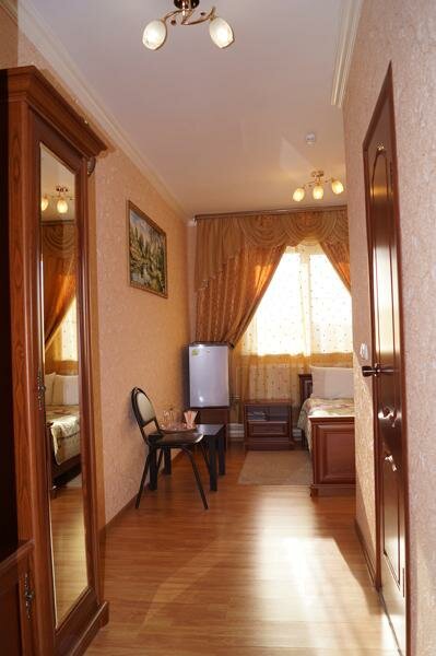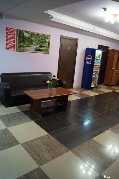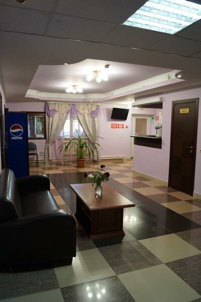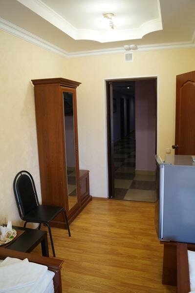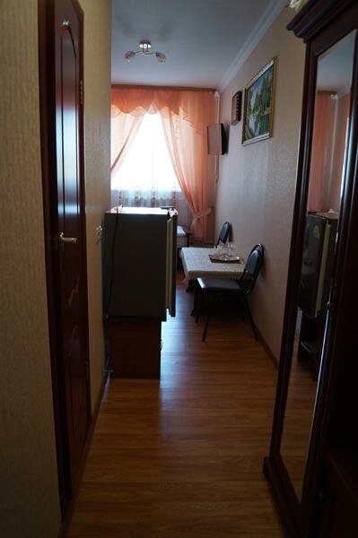 хороший отель . всё есть микроволновка, холодильник, чайник и самое главное прейскурант цен (для Военных это архиважно),есть парковка большая,классный быстрый wi-fi ,дикси в тапочках можно дойти,в одном здании этажом ниже,столовая.короче крутяк,всем советую.не пожалеете