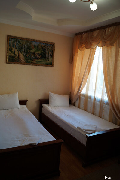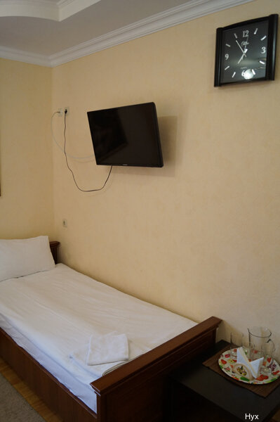 Невысокая цена, довольно вежливое общение персонала — это плюсы. Состояние номеров на тройку, сантехника — просто убитая, номера маленькие, слышимость сильная (каждое слово в корридоре, как в номере).