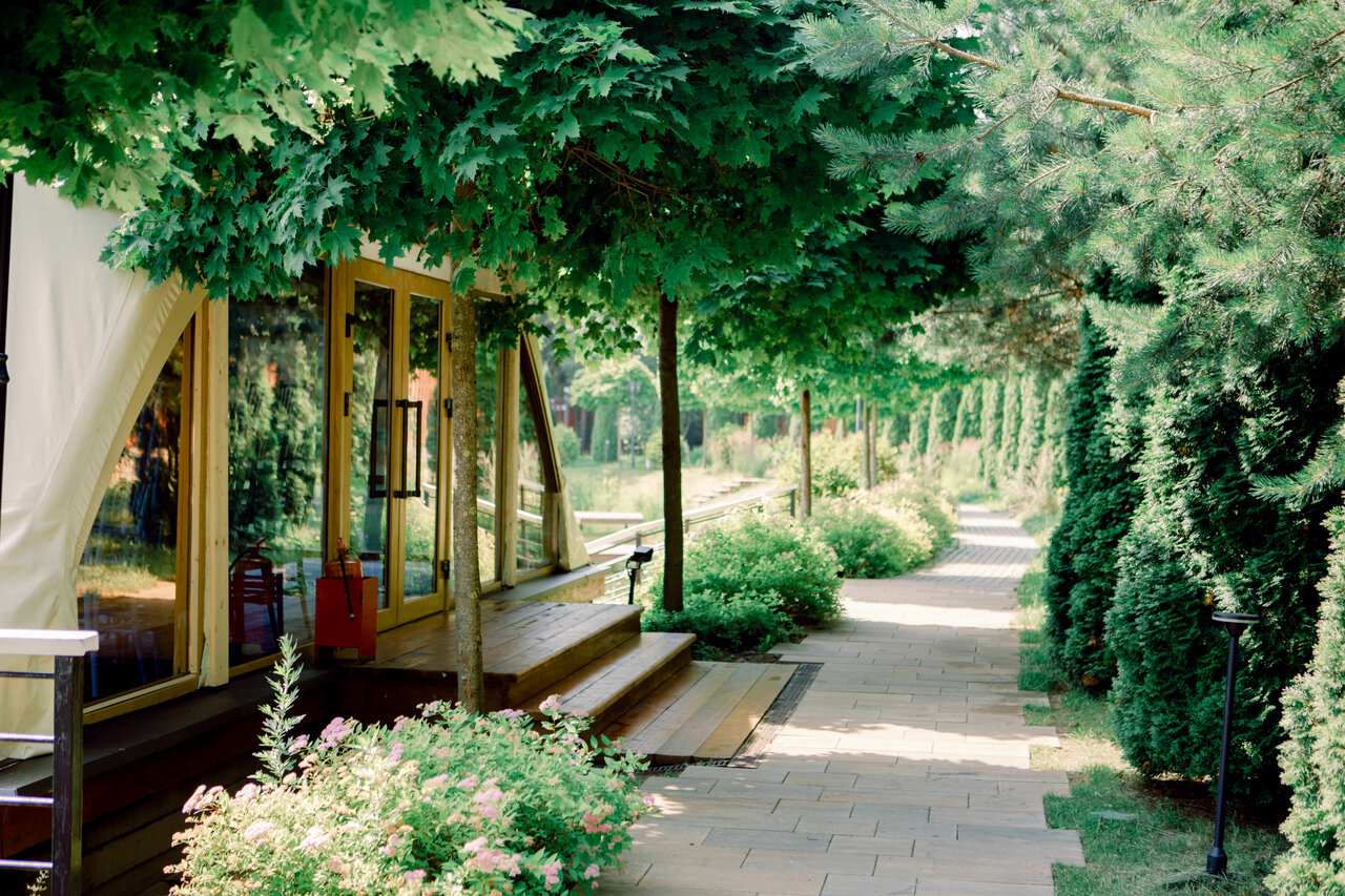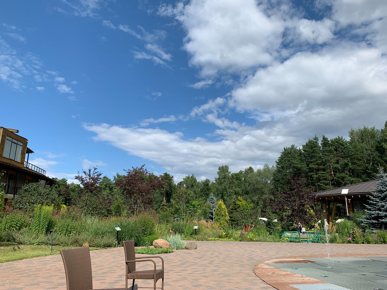 Живописная территория с множеством красивых растений и деревьев. Классная детская площадка. Очень вкусная еда в ресторане. Доброжелательный персонал. Прекрасное место для отдыха.