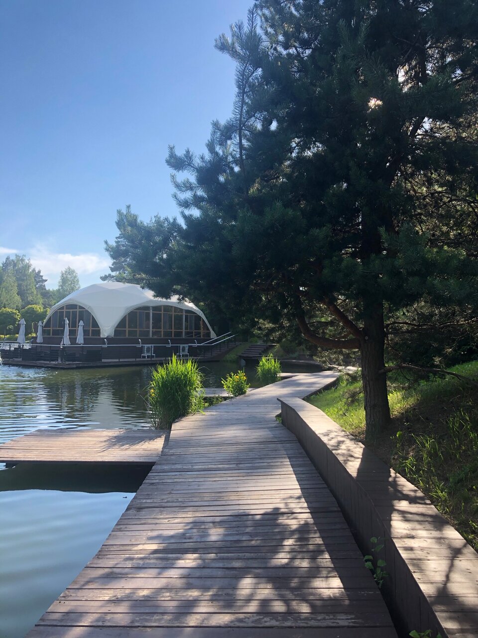 Одно из любимых подмосковных мест отдыха. Отель сделан со вкусом. Ресторан на высоте. Номера комфортные, просторные. Сервис выше всяких похвал. Великолепные банные комплексы. Можно арендовать беседку с грилем под мероприятие. Есть рыбалка для любителей, имеется зоопарк, катание на лошадях, для детишек арт-изба. Много раз и отдыхали и проводили мероприятия от дней рождения, до выпускных у детей. Да, здесь проходит очень много свадеб в летний сезон. Рекомендую.