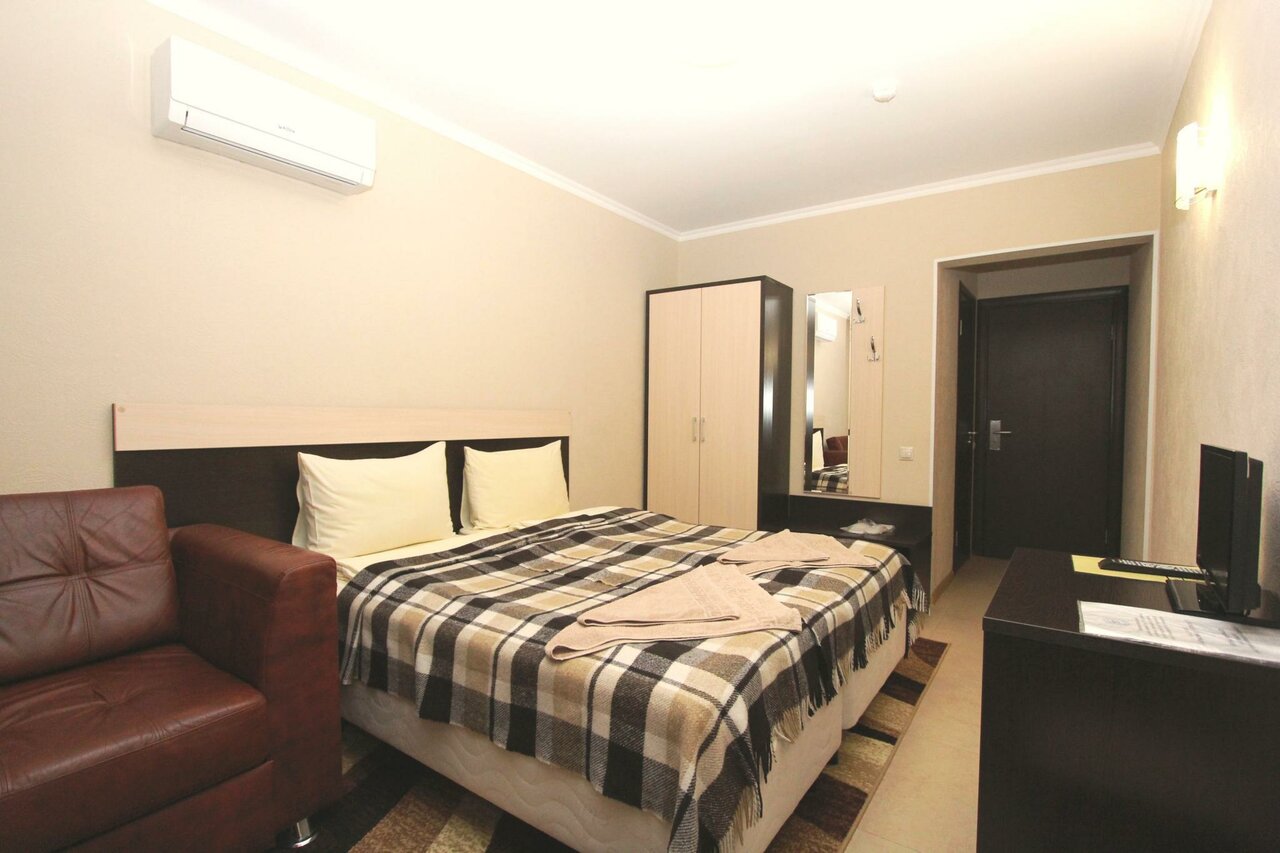 Комфортабельный двухместный номер с двумя раздельными кроватями или с одной King Size. В номере есть кондиционер, телевизор, холодильник, шкаф для одежды и банные принадлежности