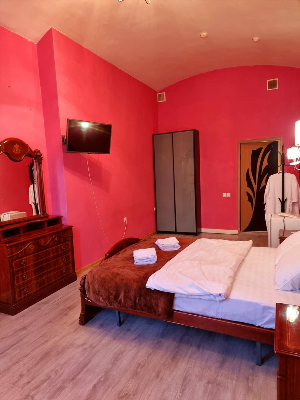 Номера колхоз. Осталось ковёр бабушкин на стену повесить. Ну сделайте модный интерьер , сделайте звукоизоляцию , повесьте зеркала большие над кроватью или за кроватью и люди к вам потянутся)
