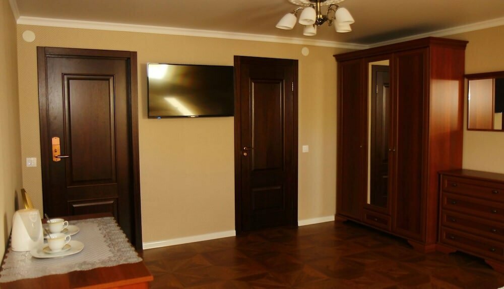 Уютный отель. Гостеприимный хозяин. В номере чисто, все необходимое имеется. Есть свой отдельный санузел. Чайная группа прилагается. Рядом лес, и в то же время недалеко от цивилизации. Есть банкетный зал, зона для барбекю.