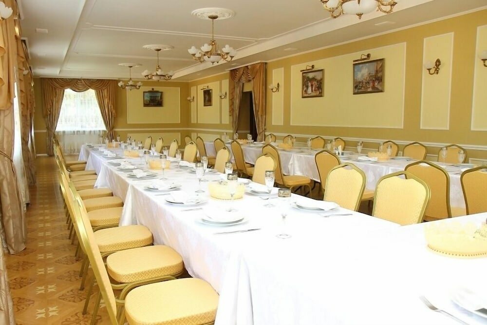 На территории: ресторан, кафе, бар, банкетный зал, сауна (платно), баня, джакузи, терраса и летняя веранда. Для гостей — бесплатная парковка, трансфер, конференц-зал, караоке, детская площадка и услуги SPA.
